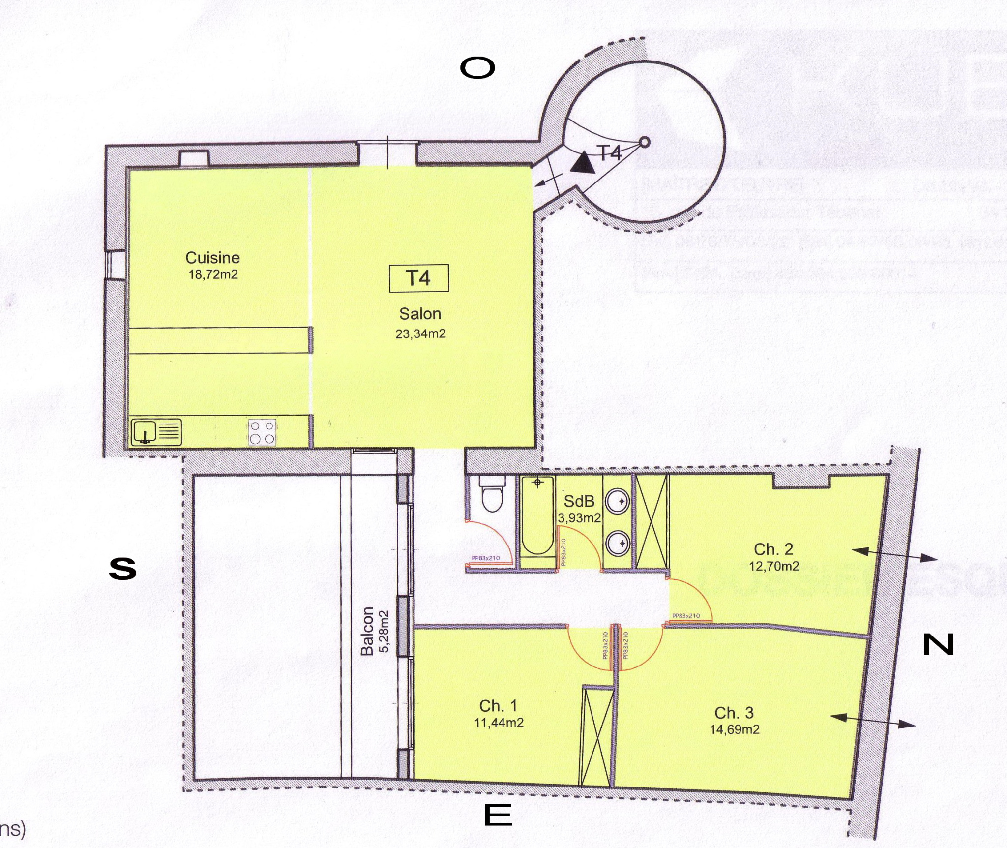 T4 de 89 M² dans maison de village au deuxième et dernier étage avec terrasse à 5 min du centre de ST JEAN DE VEDAS en voiture sur la commune de Fabregues 34690 12 rue Foch.