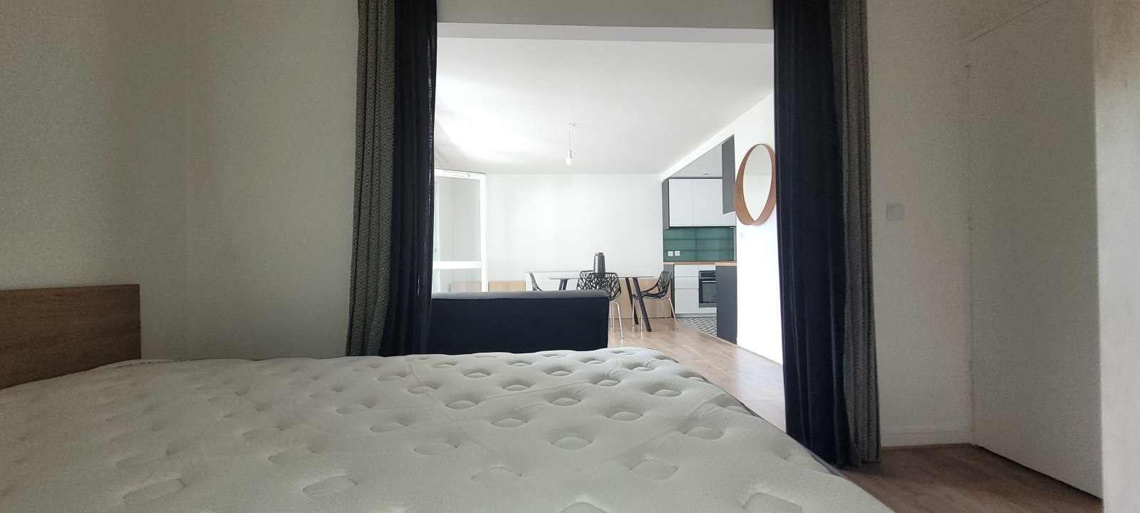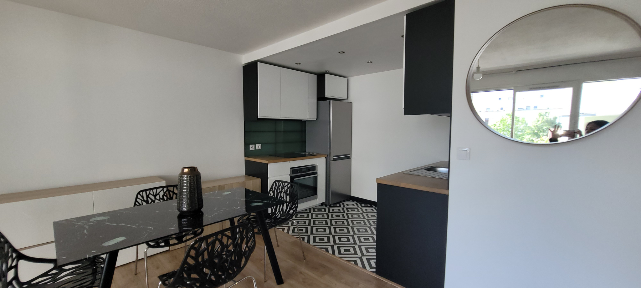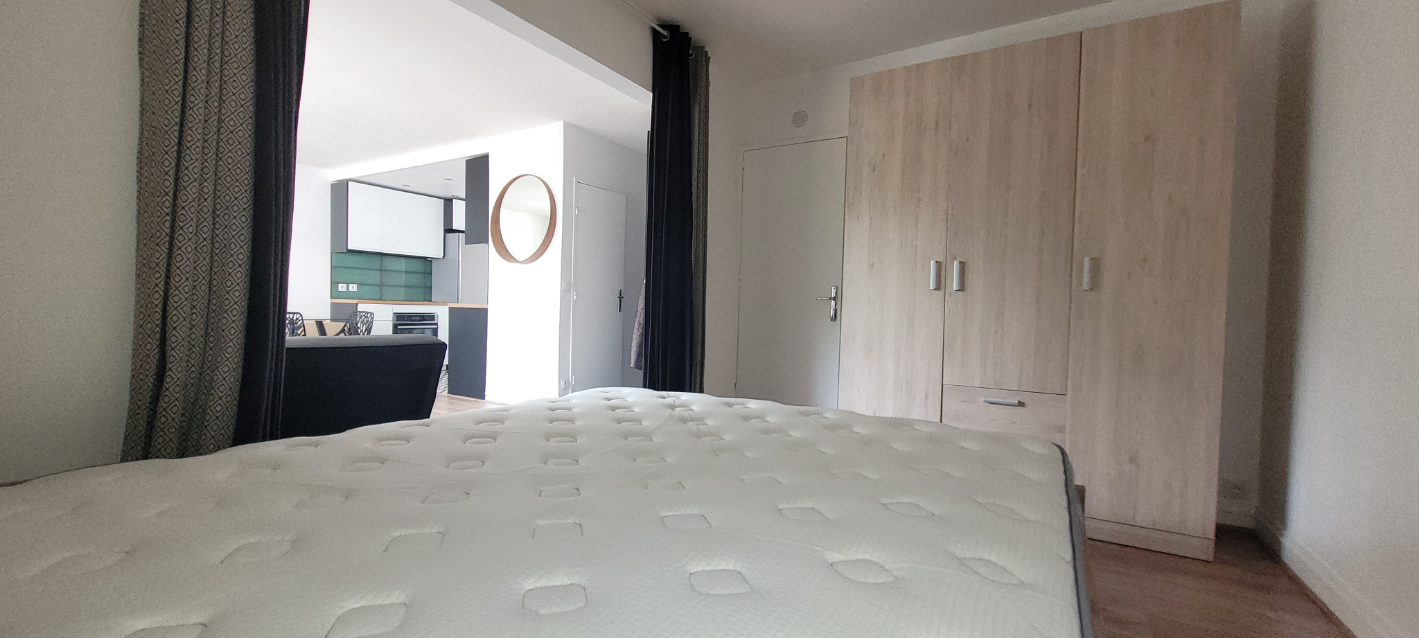 IVRY SUR SEINE - 94200 à 9 MONUTES A PIED DU METRO MAIRIE D'IVRY ou 11 MINUTES A PIED DU METRO PIERRE MARIE CURIE - L7, nous vous proposons à la Location Meublée ce bel appartement de T1 BIS, de 44 Mètres carré carrez bien distribué, situé au 2ème étage avec ascenseur d'un Immeuble de 1972 très bien entretenu et sécurisé avec gardienne. Il se compose d'une entrée, d'un spacieux séjour donnant sur un balcon de 5 Mètres carré, une cuisine ouverte et totalement équipée, d'un espace chambre offrant une salle d'eau, une toilette indépendante. CALME/LUMINEUX. Exposition SUD. Vue sur le JARDIN arboré.A VISITER ABSOLUMENT