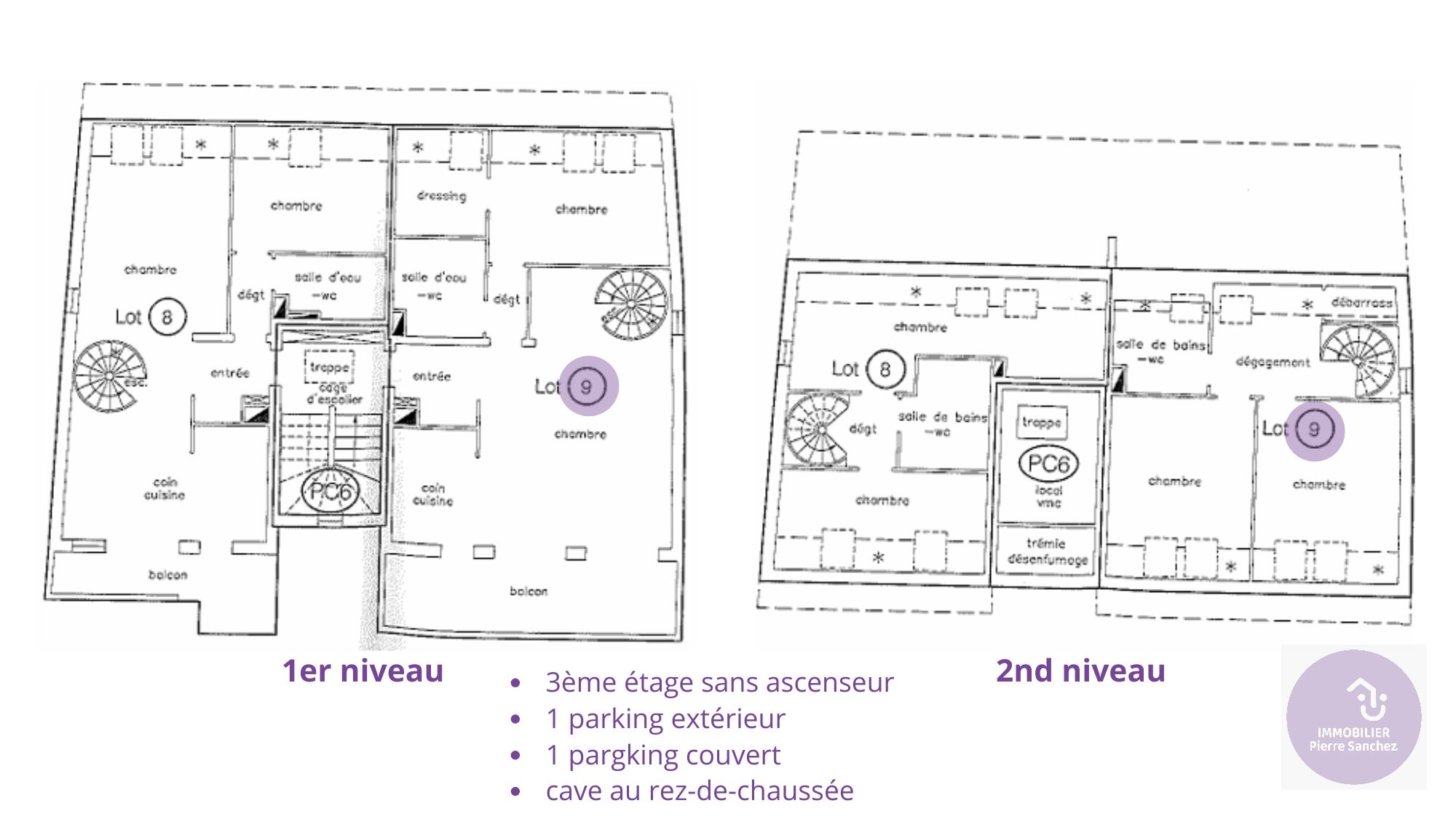 Ce duplex dispose également de deux espaces de stationnement, une place extérieure et une place couverte, ainsi qu’une cave privée au rez-de-chaussée. Un garage à vélos collectif est à disposition pour les déplacements de proximité.