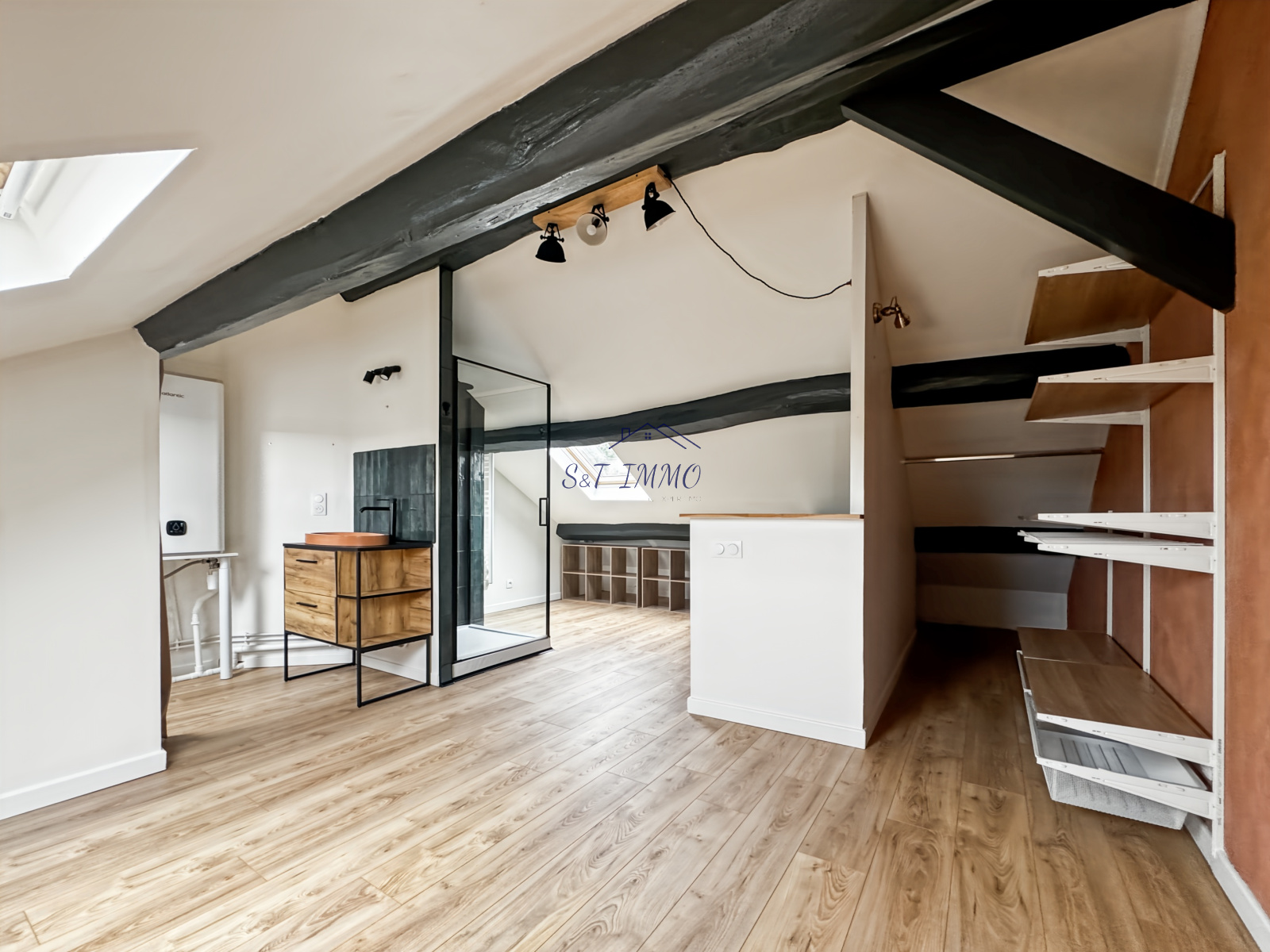 Il se compose : d'une pièce à vivre lumineuse avec sa cuisine ouverte, à l'étage une chambre avec son dressing et sa salle d'eau ambiance loft. Un bel espace coconing alliant confort et praticité.