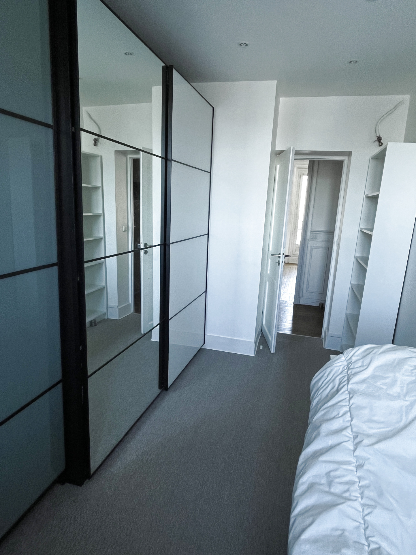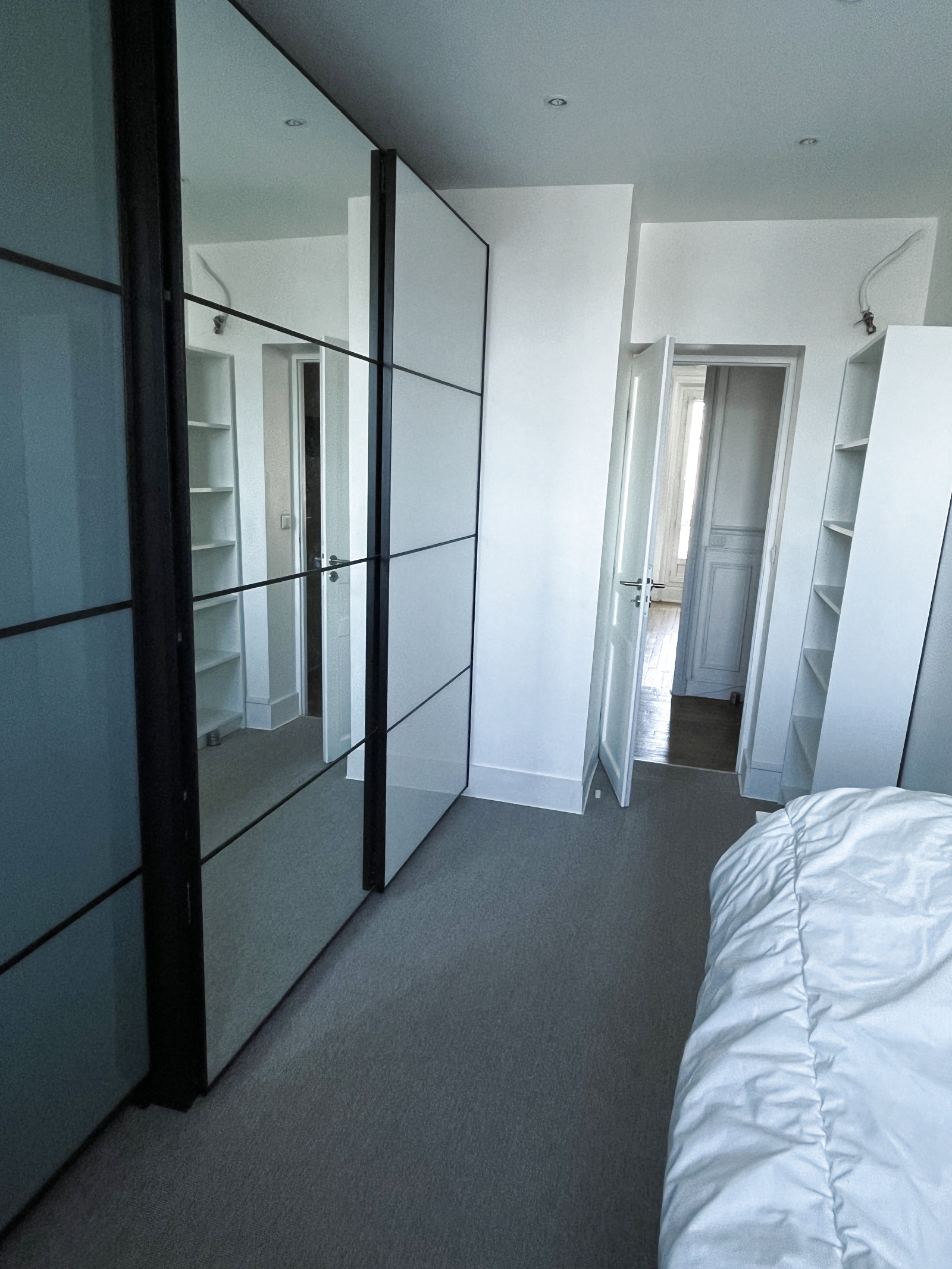• 2 chambres dont une de près de 13 m2 avec pour les 2 de grands placards et des portes en glace,