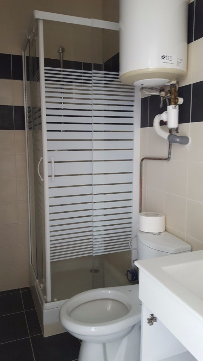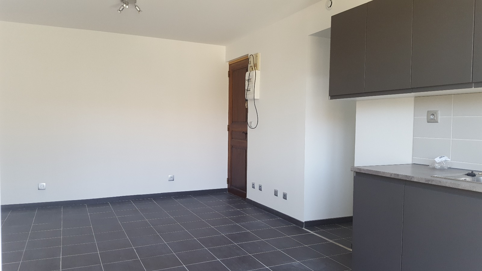 Dans petite copropriété - Au 1er étage - Appartement de type 2 pièces comprenant : Cuisine aménagée dans séjour donnant sur terrasse privative, coin nuit, salle d'eau avec toilettes. Parking. Loyer mensuel 630€ + charges mensuelles 70€.