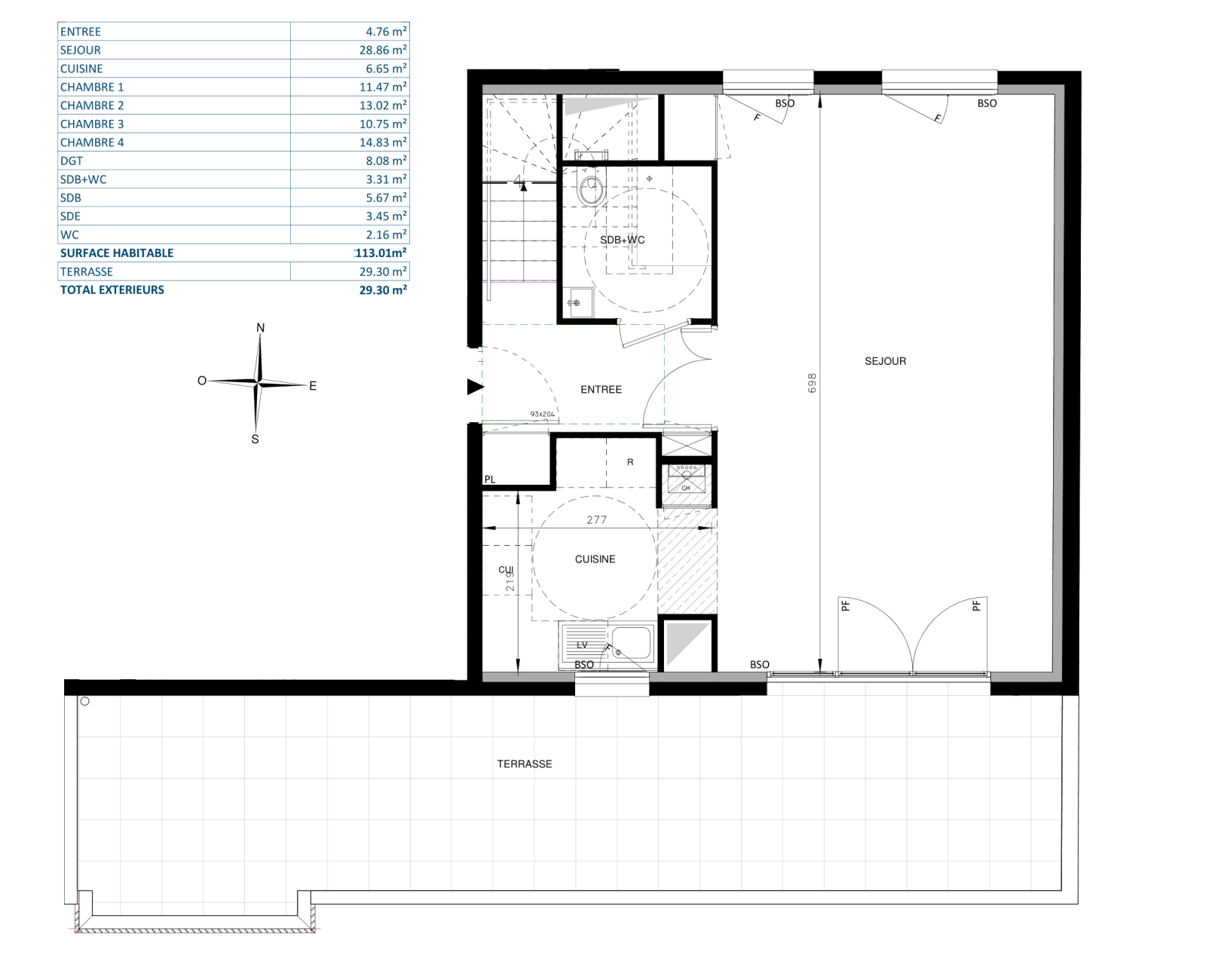 Cet attique de type T5 en Duplex de 113m² habitable au 4ème et dernier étage, avec ses 29m² d'extérieurs, vous offre de beaux espaces de vie et de réception, une belle luminosité à tous les niveaux.
