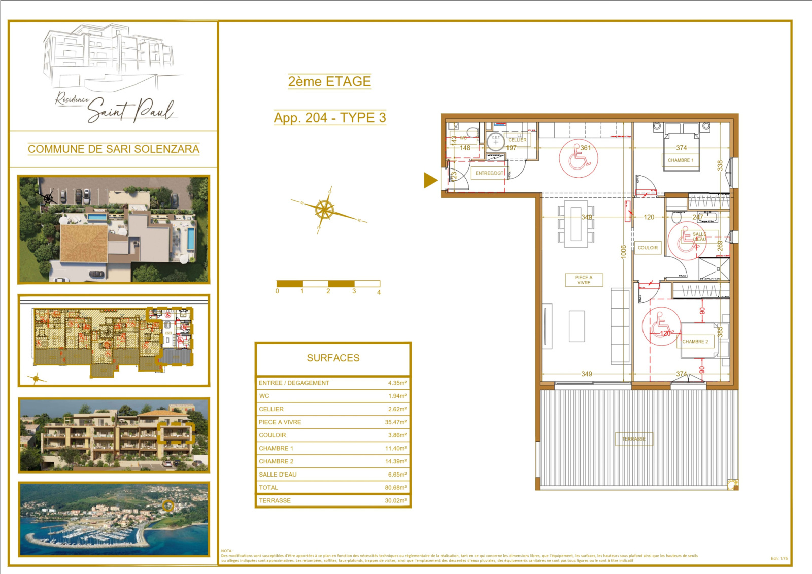 Au coeur du village de SOLENZARA, appartement T3 de 80,68 m2 donnant sur grande terrasse de 30 m2 face à la mer.