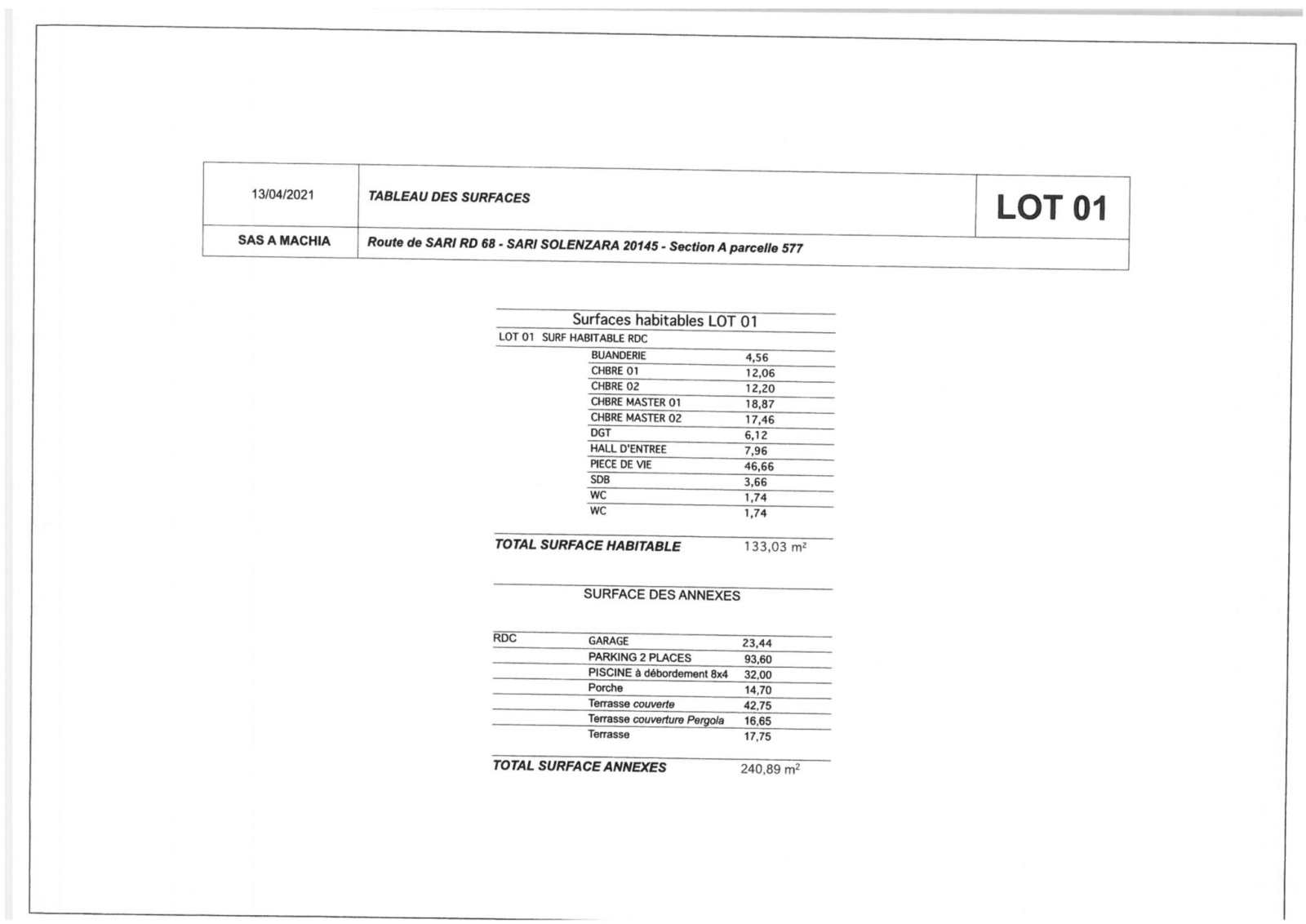 Villa T5- Sari- Solenzra, vue mer, de 152,11 m2