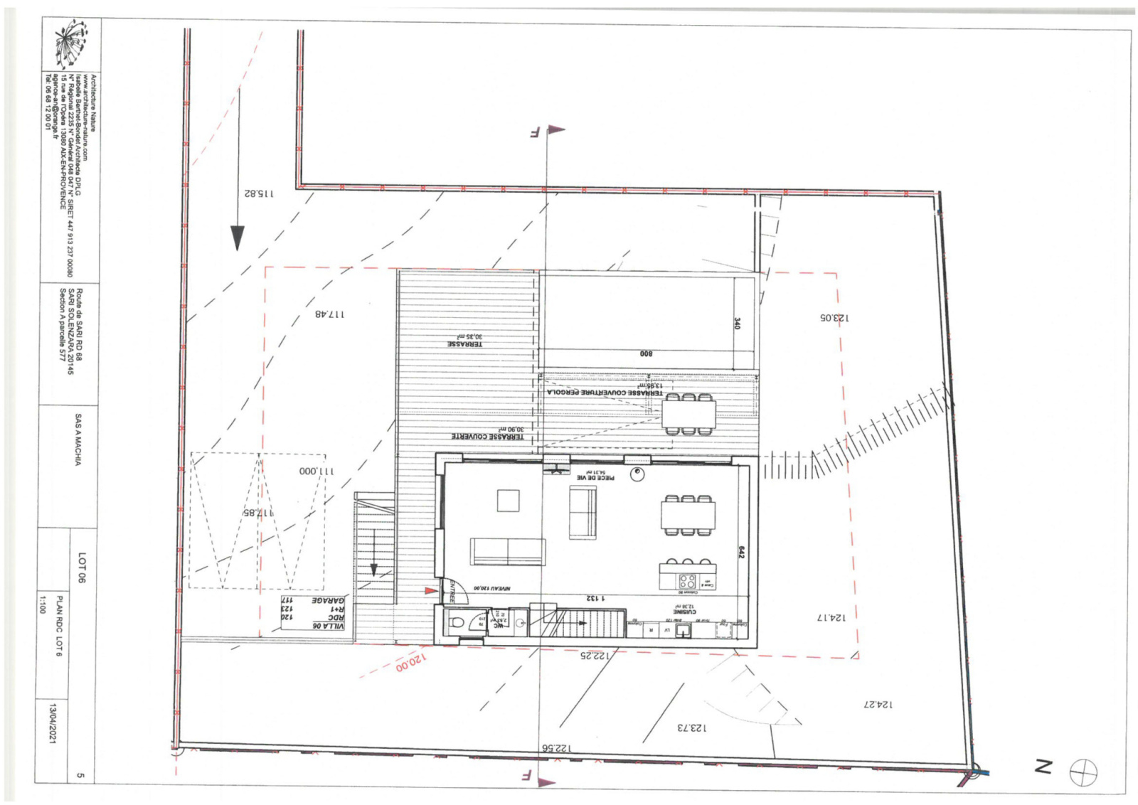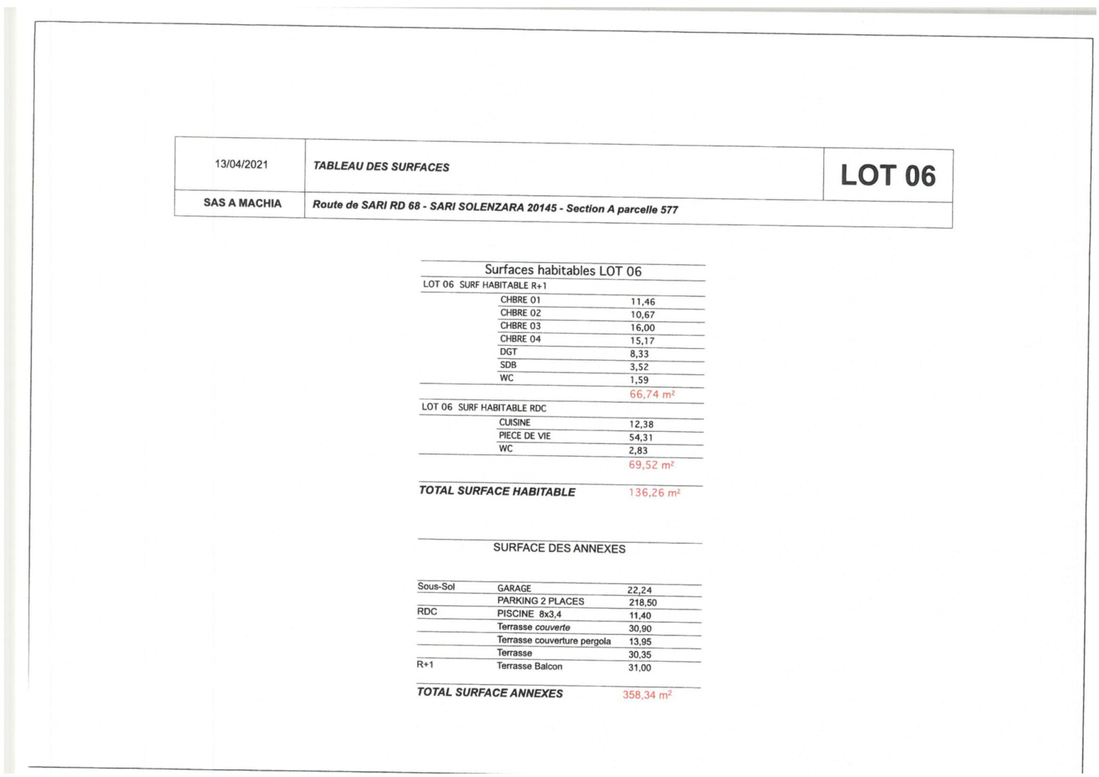 RDC : Grand séjour de 54,31 m2, cuisine ouverte entiérement équipée de 12,38 m2 et wc.