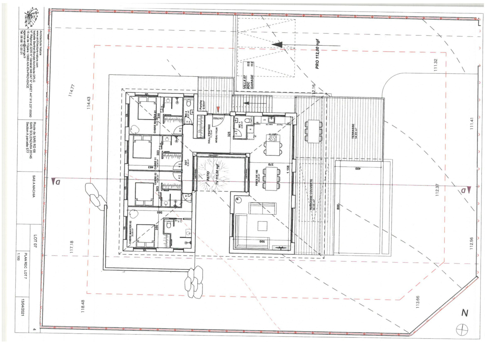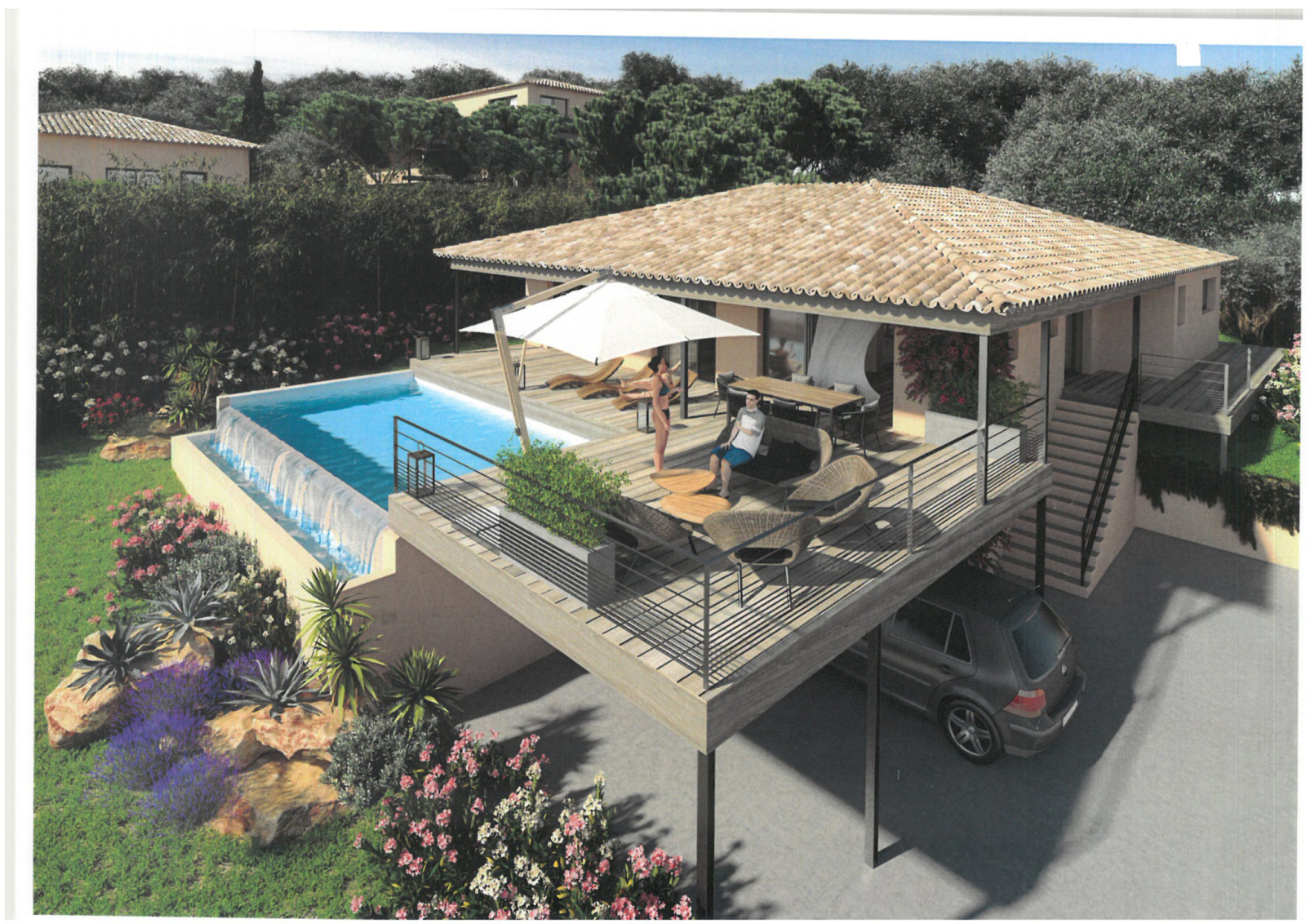Villa de plain-pied de 135 m2 sur un terrain de 1007 m2, vue mer avec piscine et garage.