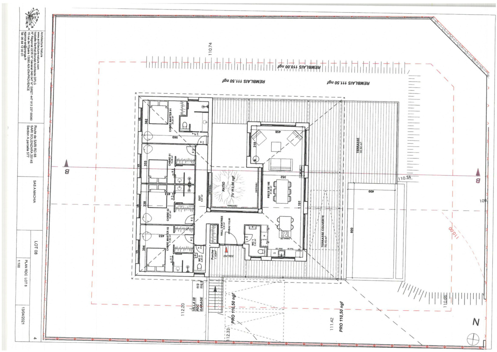 De plain-pied, avec un grand séjour de de 42 m2 donnant sur une terrasse de 113,15 m2 et une cuisine ouverte entièremenr équipée.