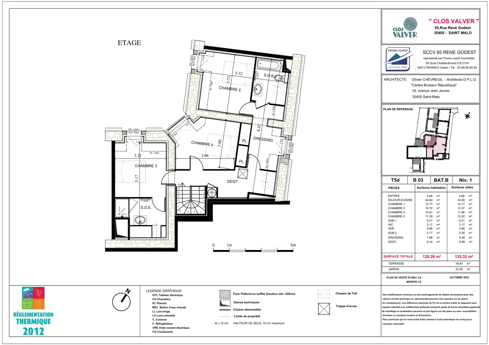 entrée, séjour-cuisine, 4 chambres (dont une suite parentale) , salle de bains, salle d'eau, dressing WC