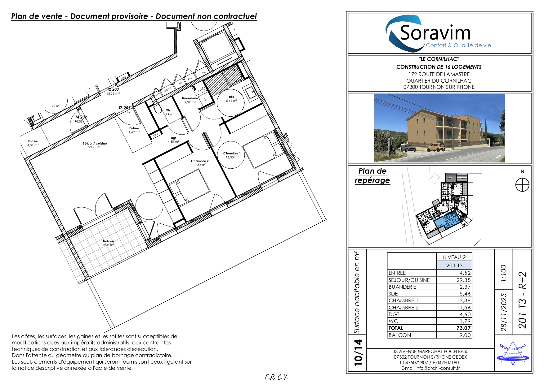 Route de Lamastre, dans une résidence neuve de 14 logements (T2 à T4), découvrez ce T3 au 2ème étage de 73,07 m² avec balcon 9 m².