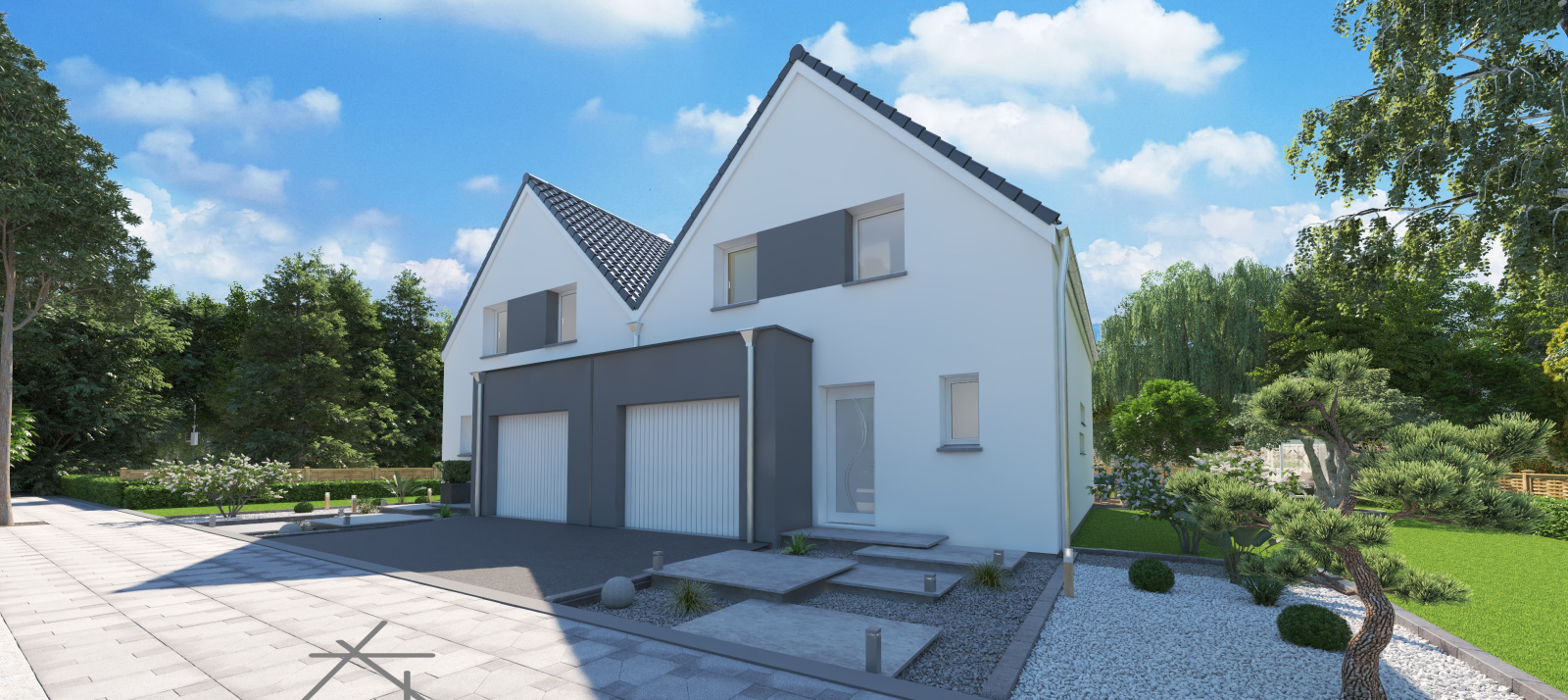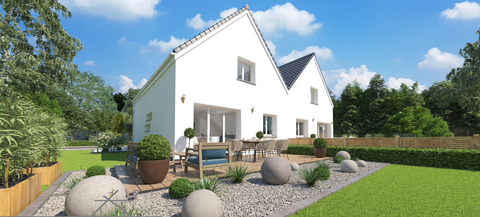 MERXHEIM - Maison jumelée neuve à construire d'environ 90 m² sur un terrain plat de 3,85 ares.