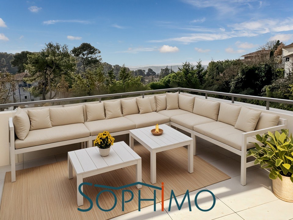 Remis à la vente, opportunité à saisir ! Comme une maison de plain pied mais en dernier étage ! Magnifique appartement T3 en attique avec terrasse de pratiquement 80 m2 exposée Sud Ouest et Nord pour en profiter toute l'année ! Coté Sud , une vue dominante jusqu'au Pilon du Roy et la chaine de l'Etoile, coté Nord vue sur la colline arborée ! L'appartement comporte un bel espace de vie avec cuisine ouverte (voir proposition virtuelle), exposé plein Sud, donnant sur la terrasse , 2 chambres donnat également sur la terrasse, une grande salle de bain et toilettes séparée. Inclus dans le lot un garage double. Beaux matériaux et prestations haut de gamme : climatisation réversible, menuiseries aluminium, normes RT 2012, Label BB), pour cette très jolie résidence intimiste (16 appartements) de standing qui vient d'être livrée. Egalement disponibles 2 appartements T' avec grande terrasse. Frais de notaires réduits. Pour plus d'informations, n'hésitez pas à me contacter : Sophie AVEDIAN : O7.82.04.07.46 (RSAC 753740786 AIX)