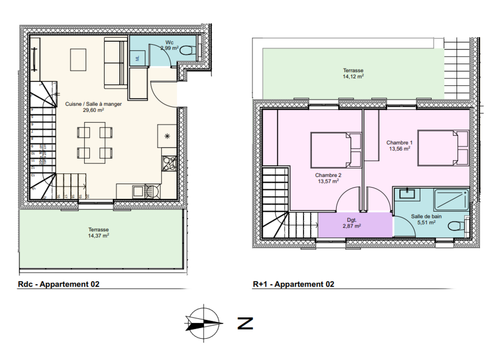 Deux appartements de type T3 sont proposés en Duplex, à partir de 270 000€.