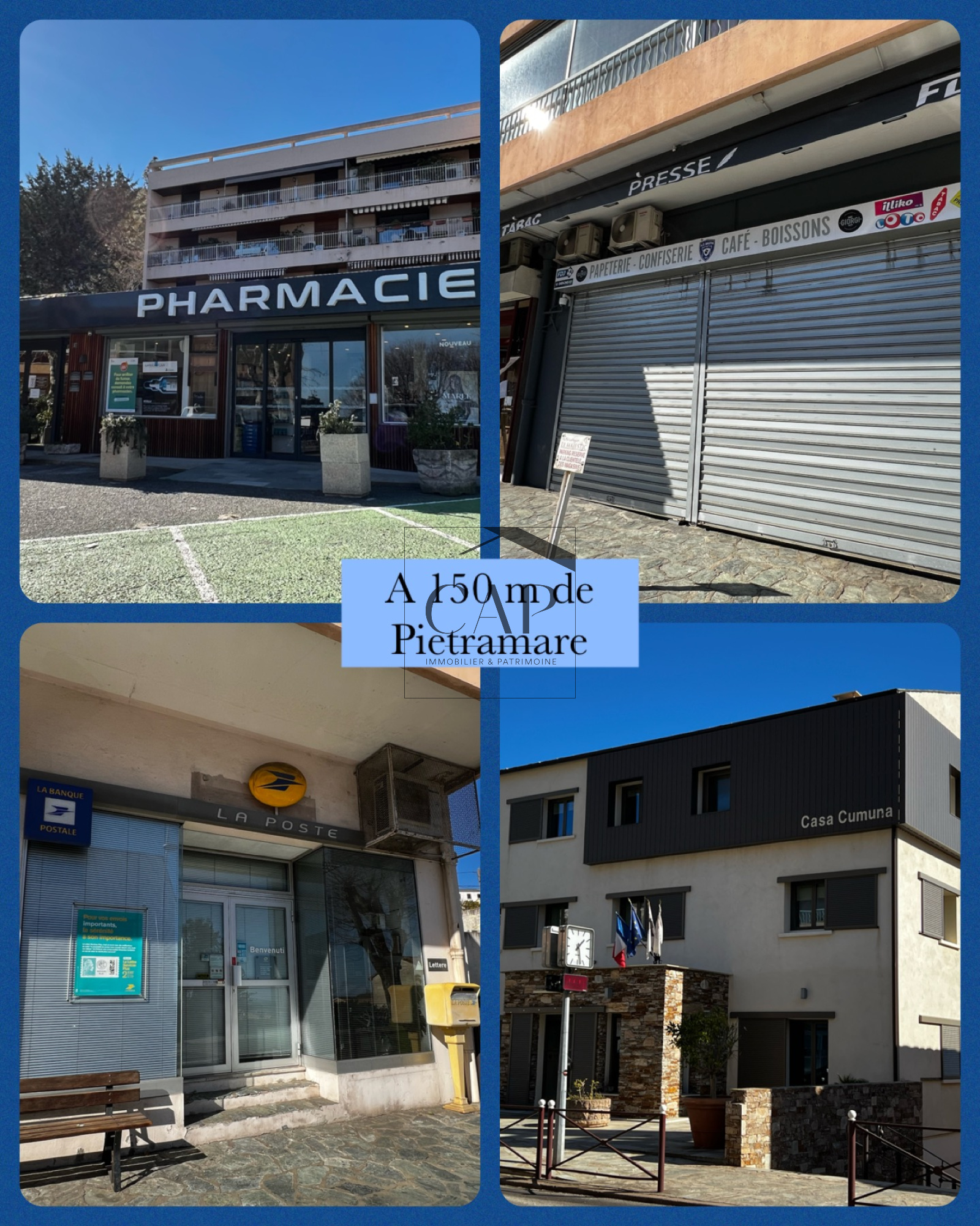 Commerces accessibles à pieds, centre-ville et Port de Bastia (ferries) à 5min, aéroport de Bastia-Poretta à 30min, à 40min de St Florent et accès facile vers le sud par la double voie.