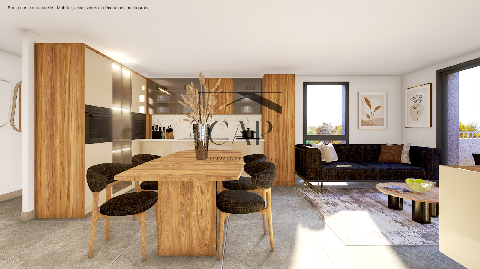 Belle pièce de vie lumineuse avec cuisine ouverte de plus de 25m²