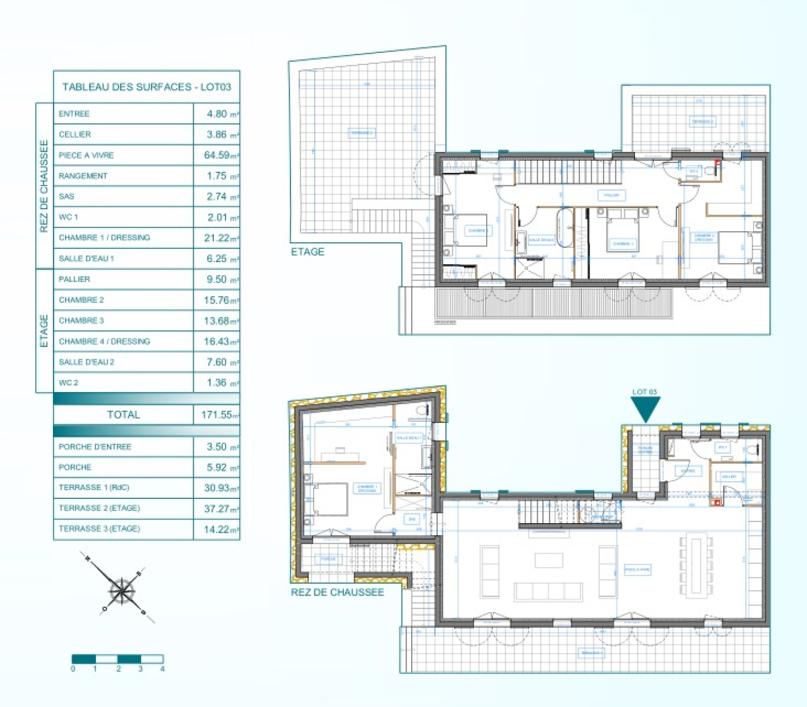 Elle a une surface habitable de 172.6m² et se commpose de la façon suivante: