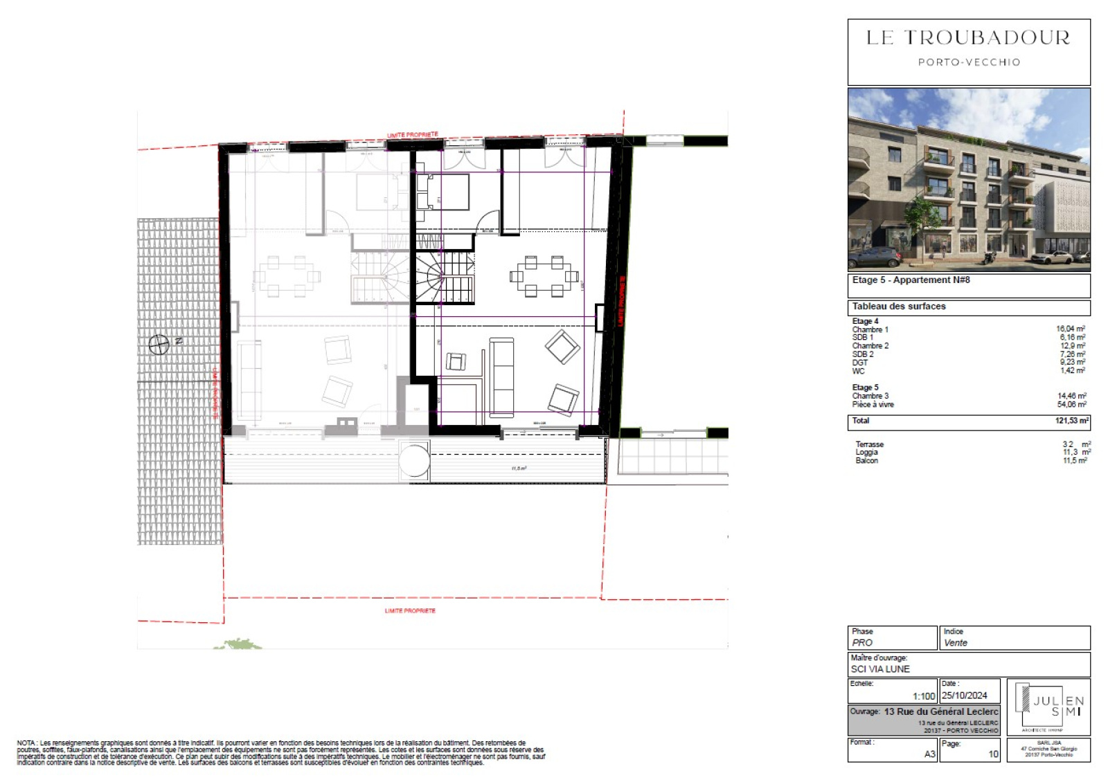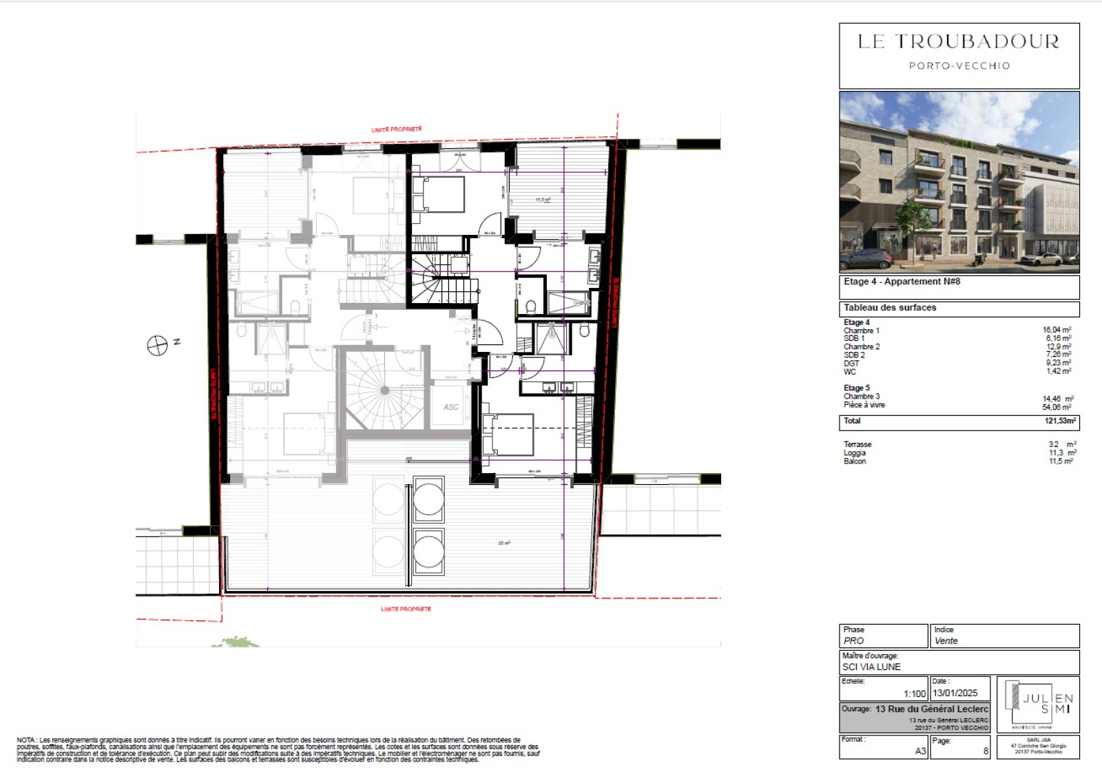 Au coeur de Porto-Vecchio, appartemet T4 en duplex avec grande terrasse :