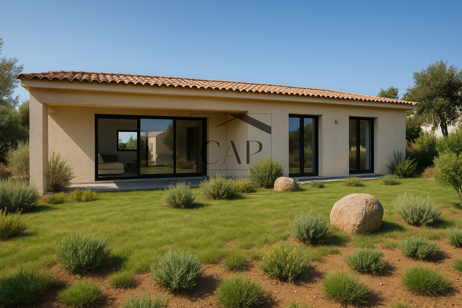 CAP Immobilier & Patrimoine vous propose à la vente une villa individuelle T4 neuve de 106 m² habitables, avec jardin privatif de 660 m², à Sainte-Lucie de Porto-Vecchio (20144).
