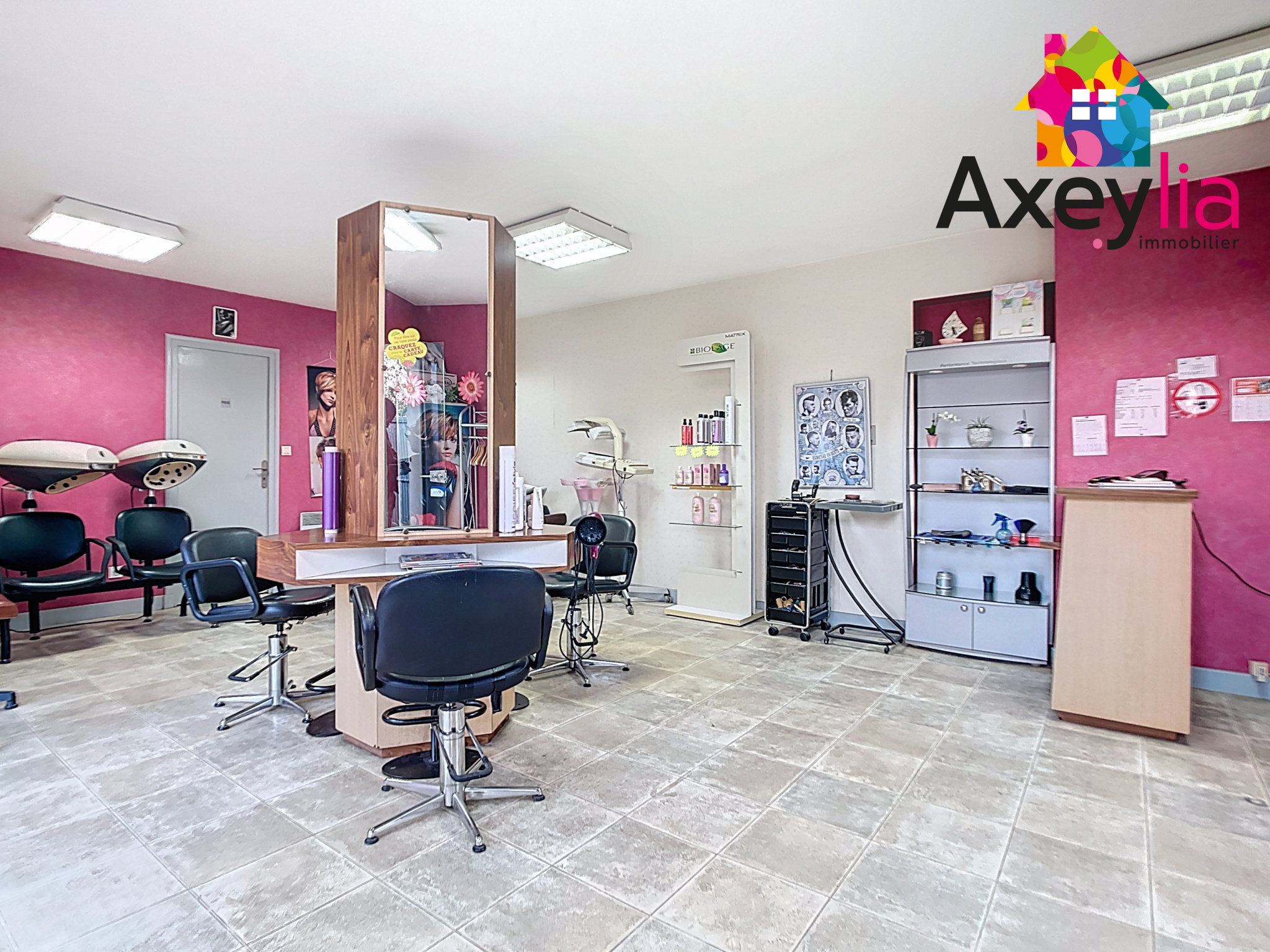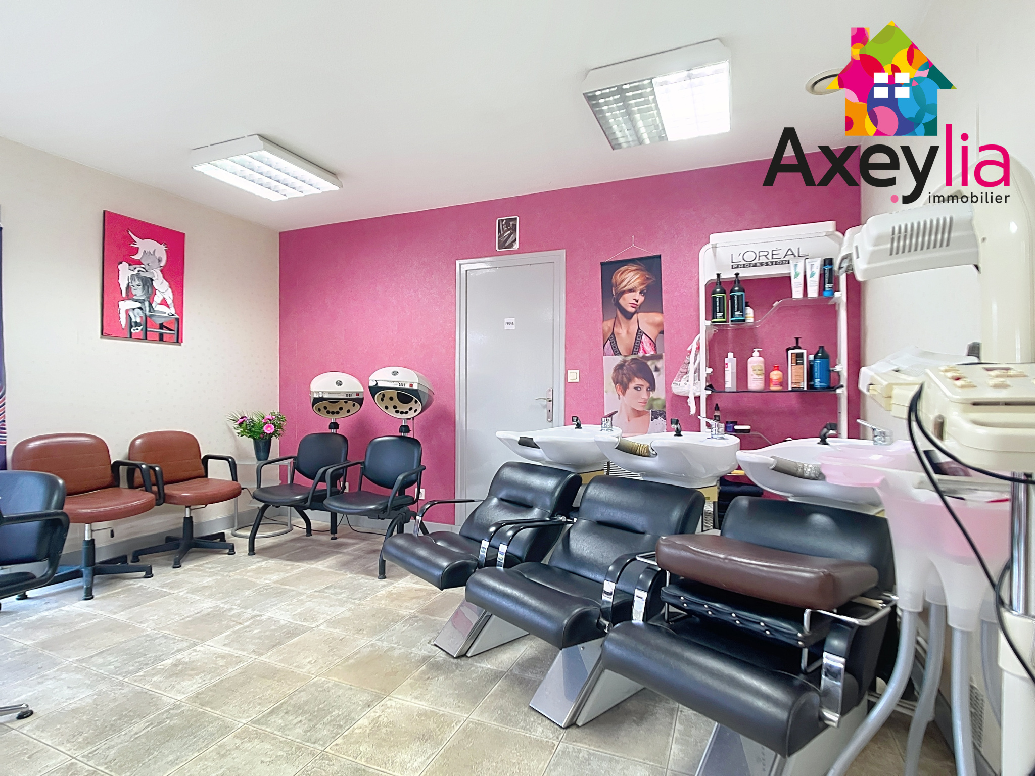 Local commercial loué actuellement 363€ comprenant surface commerciale avec 4 postes de coupe, 2 bacs à shampoing, WC, réserve.