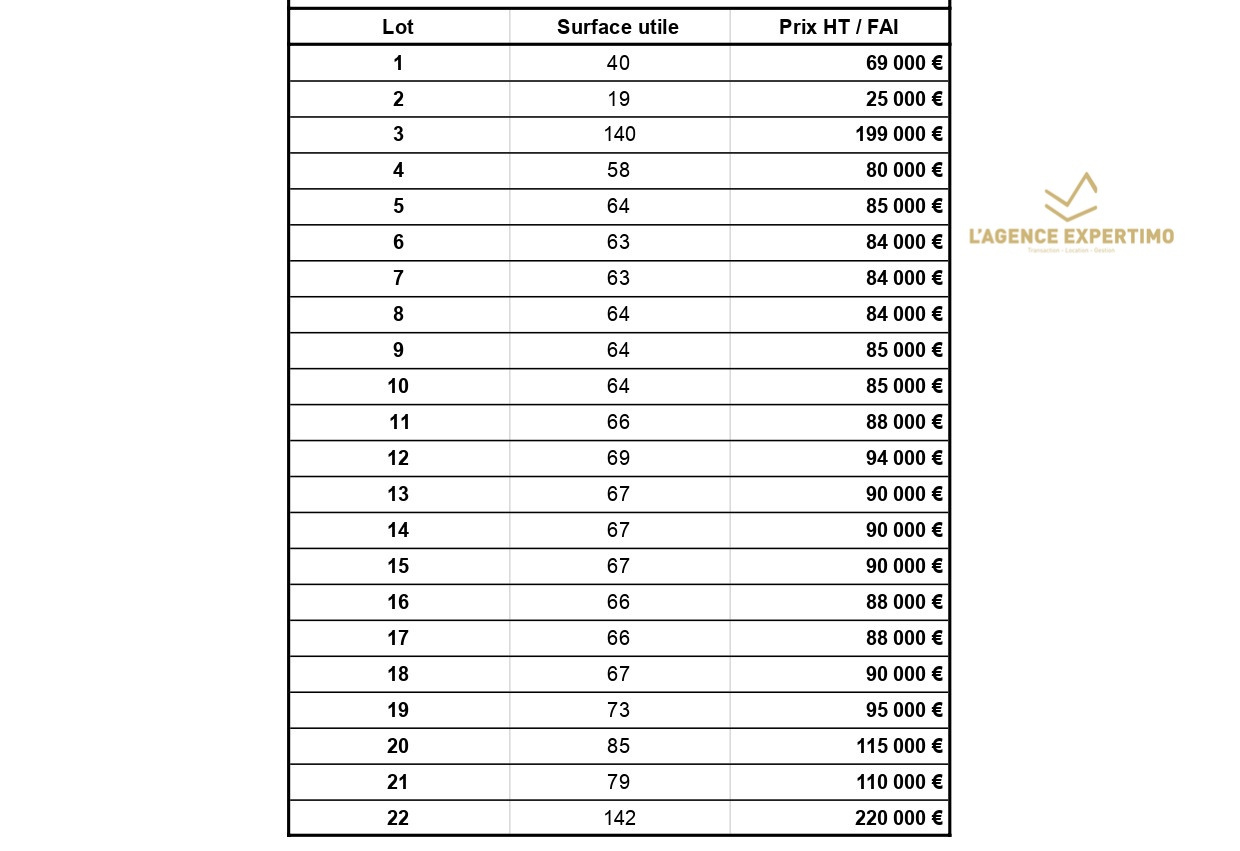 La plus petite surface 40 M² à 69 000€ HT, la plus grande 140 M² à 199 000€ HT.