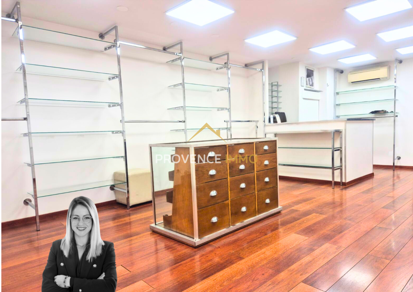 Près de 30m² de surface dédiée à la vente, accessible PMR, sol en parquet.