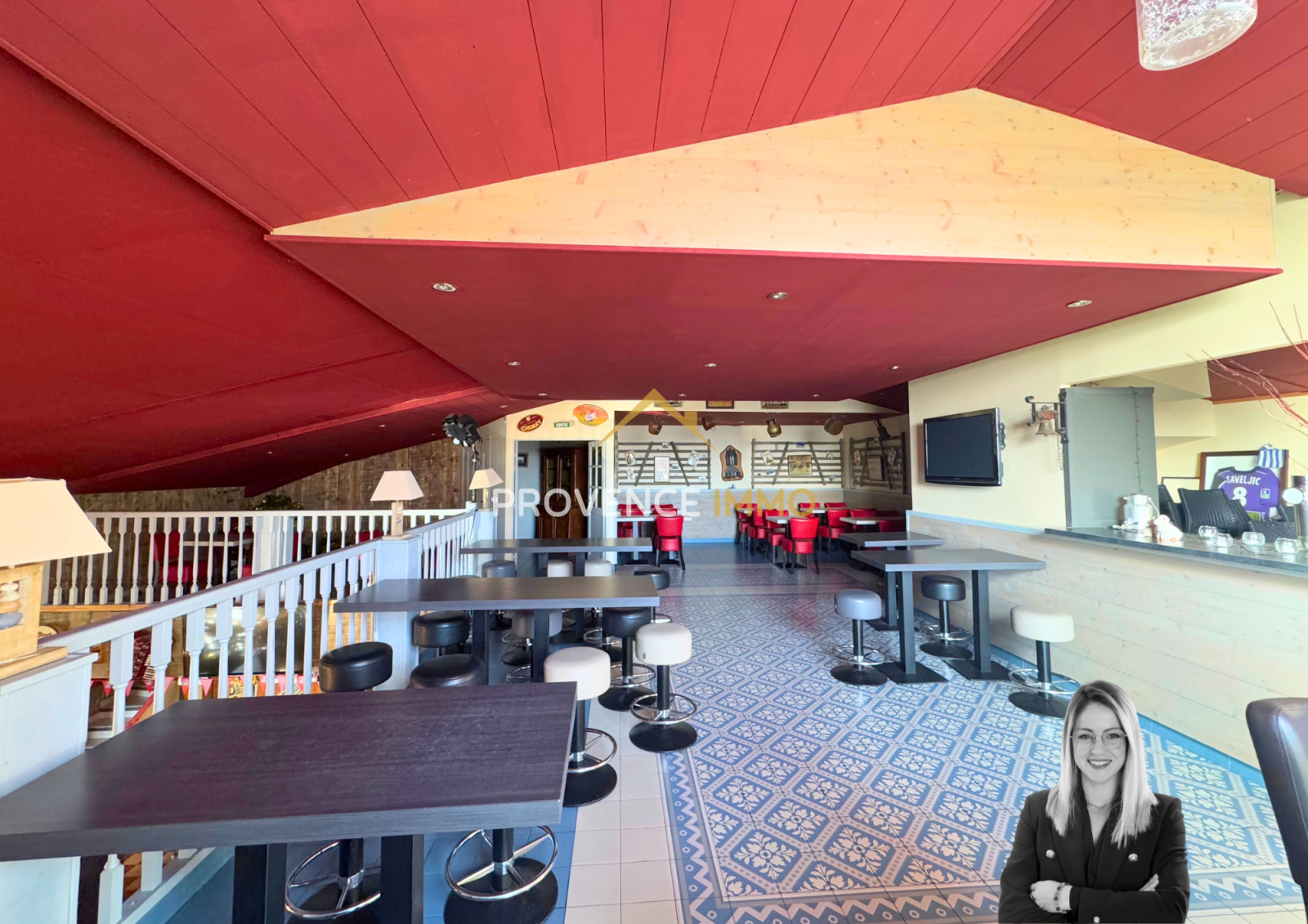 Sur le second niveau, EN MEZZANINE ouverte, s'ajoutent près de 200m² aux multiples fonctions grâce à son 2e comptoir de service : Soirées privatisées, buffets, groupes de musique, ou simplement en salle de restaurant.
