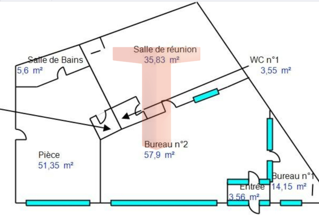 - 1 pièce de 51,3m² aménagé en studio actuellement