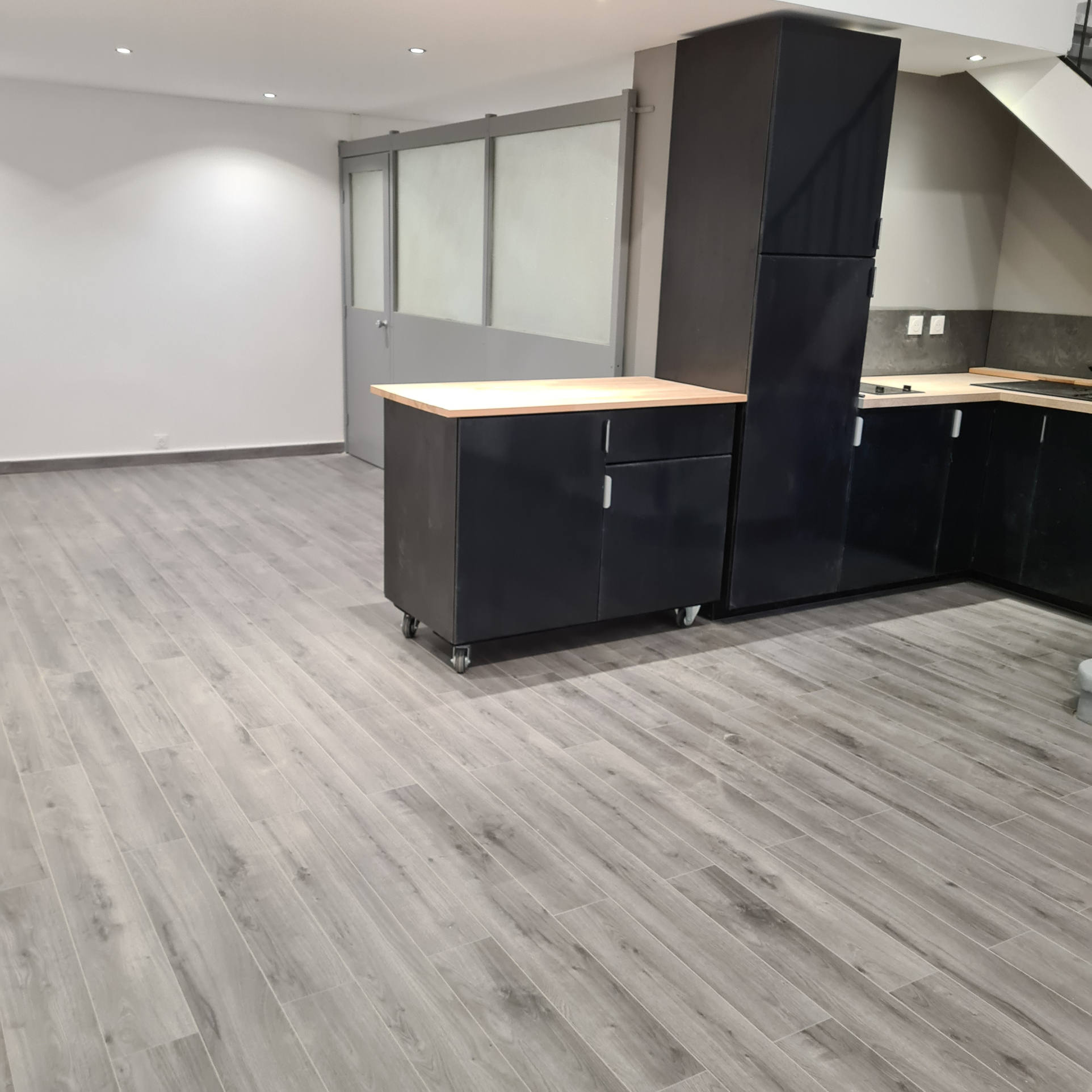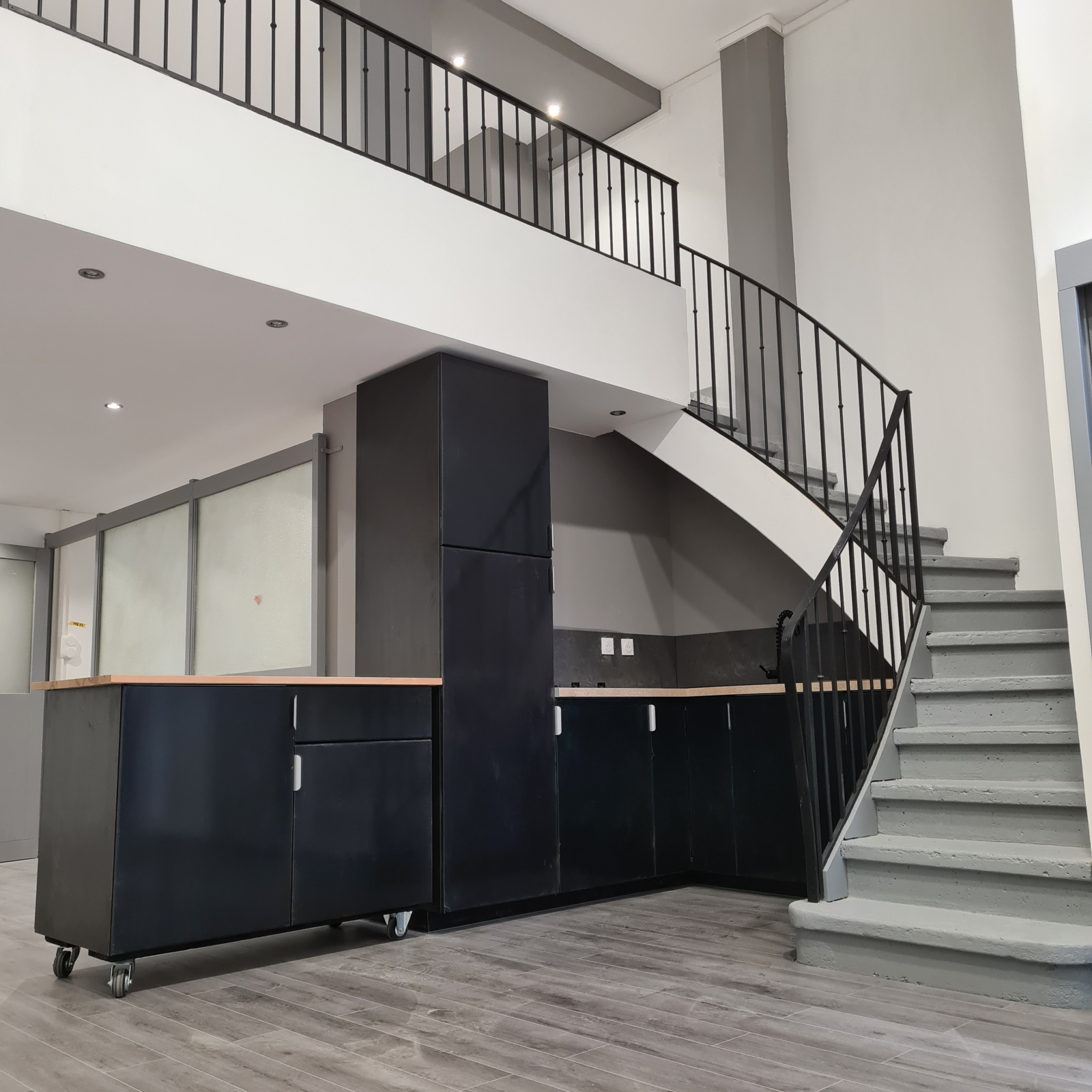Il possède une mezzanine et une piéce fermée pouvant servir de bureau, dispose également d'une cuisine, d'un wc et une sdb.