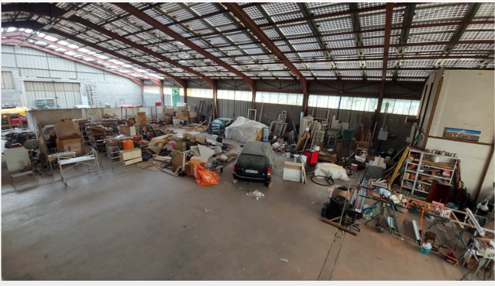 L'entrepot a été construit en 1982, et se compose d'un atelier (ancienne carosserie) de 1002 m2 et 117 m2 de bureaux qui nécéssitent des travaux de restauraton. L'ensemble est bati sur un terrain de 3 325 m2.