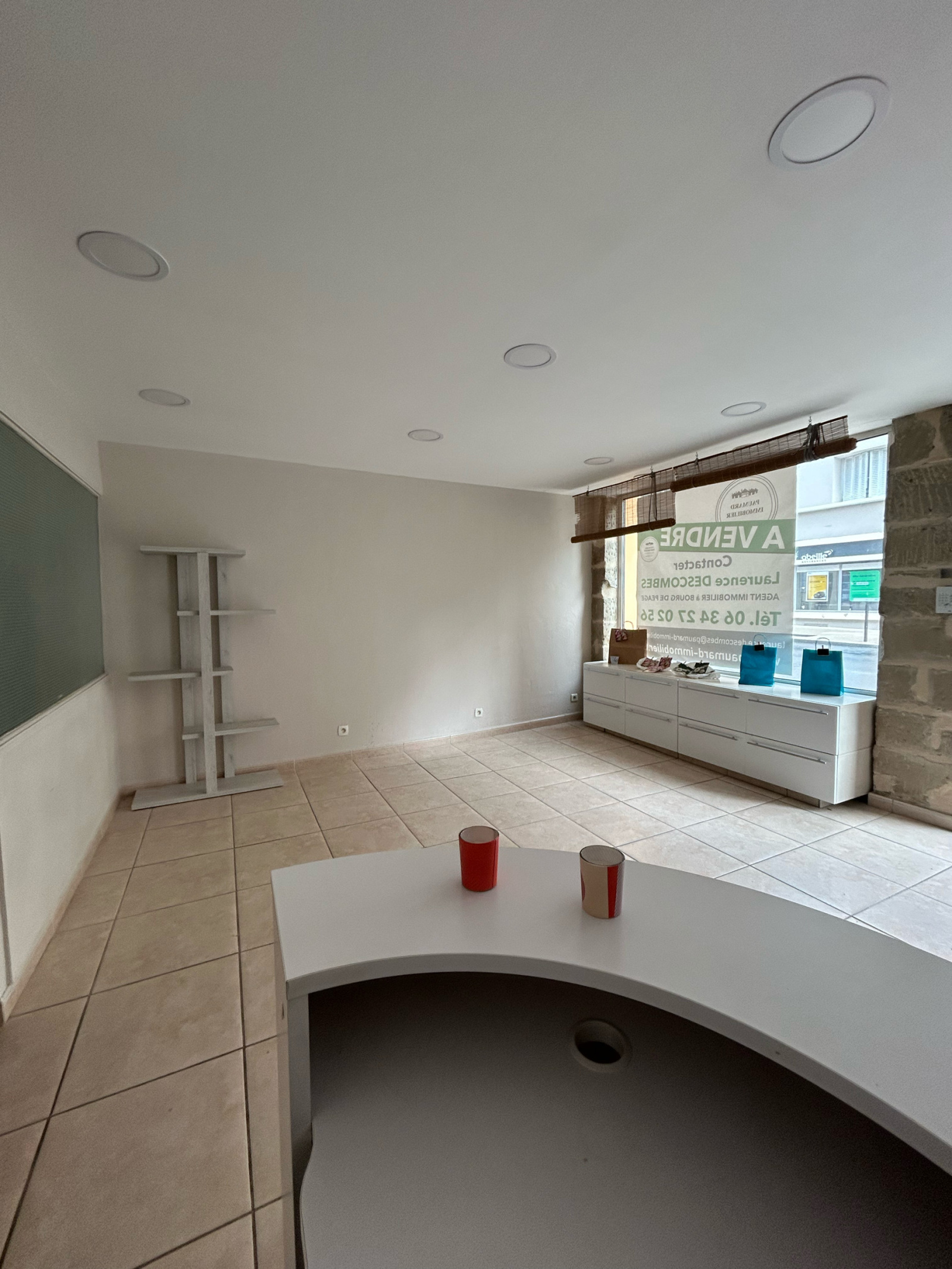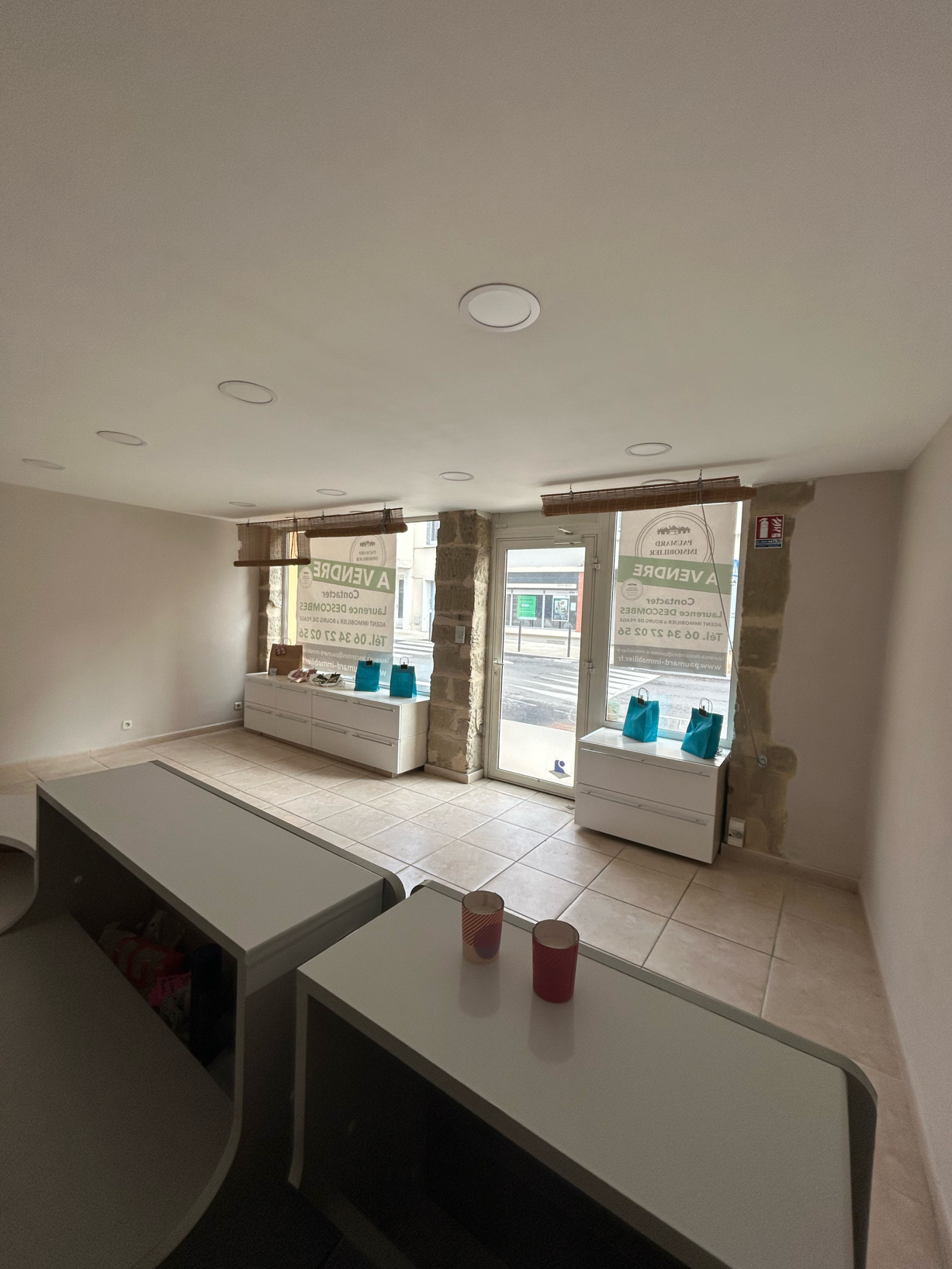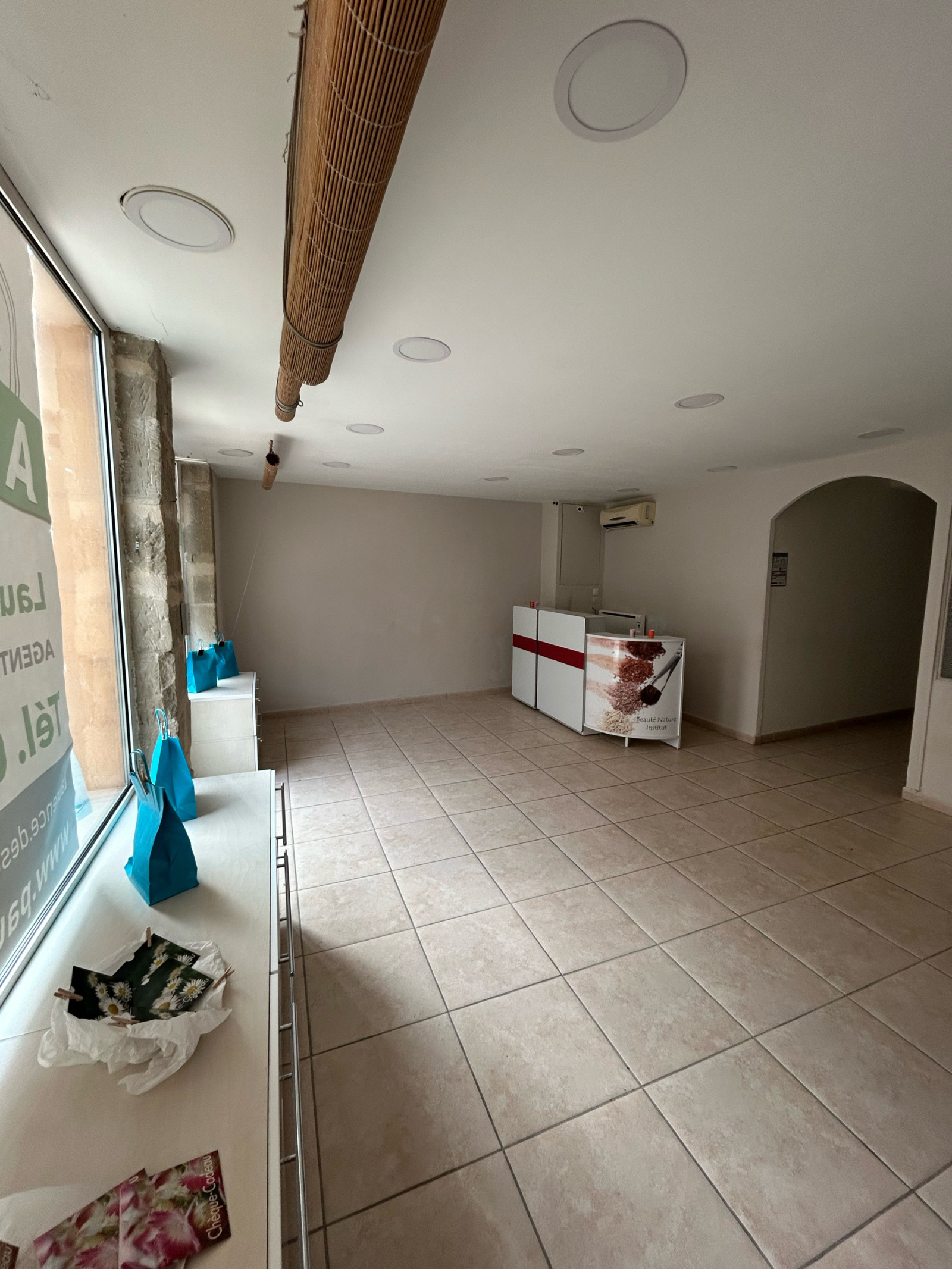 au rdc 1 espace de vente , 1 bureau ouvert , 1 pièce fermée bureau ou autre , au sous sol 3 pièces fermées 1 local informatique 1 toilette indépendant 1 petit espace ouvert sous l escalier