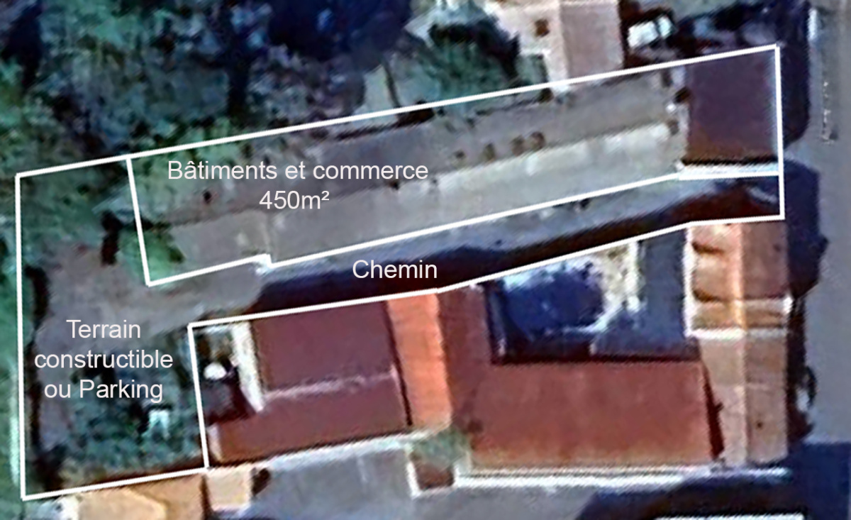 Sur une parcelle d'environ 1100m², ce bien se compose d'une façade avec vitrine commerciale d'environ 90m² suivie en enfilade de 360m² de bâtiments bruts, divisables et accessibles individuellement avec véhicules. Le fond de propriété peut faire office de parking ou être construit, CU positif.