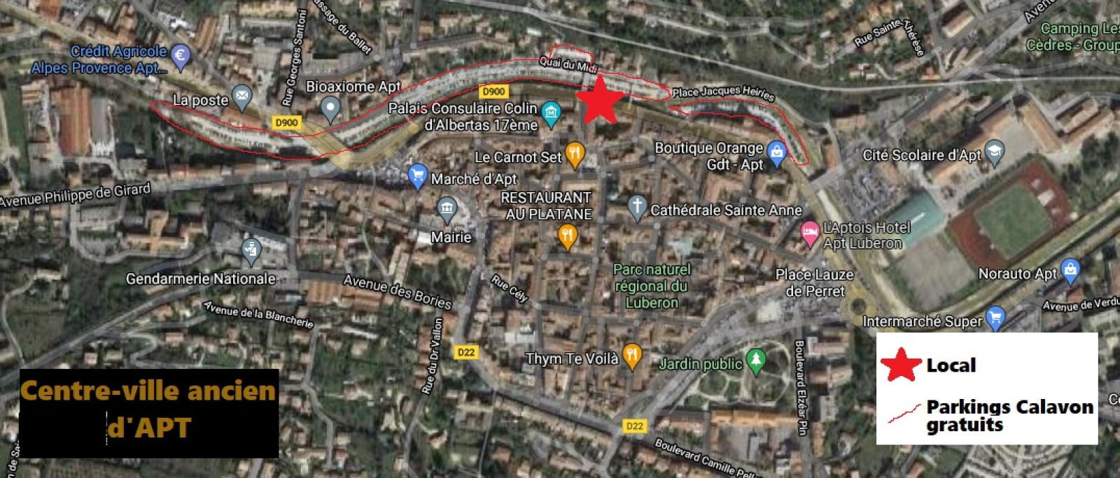 Situé juste en face des parkings gratuits du Calavon, le local a été loué pendant 27 ans comme restaurant, salle d'arcade/jeux vidéos, bars d'ambiance.