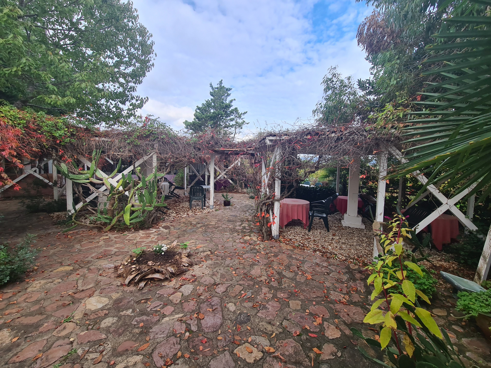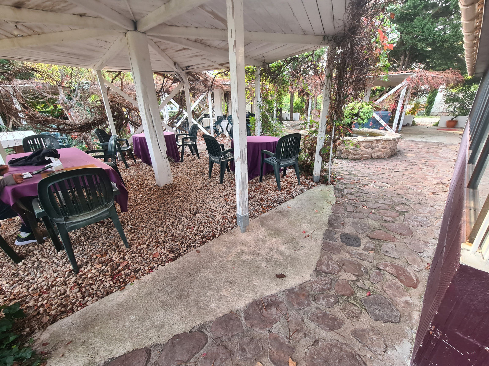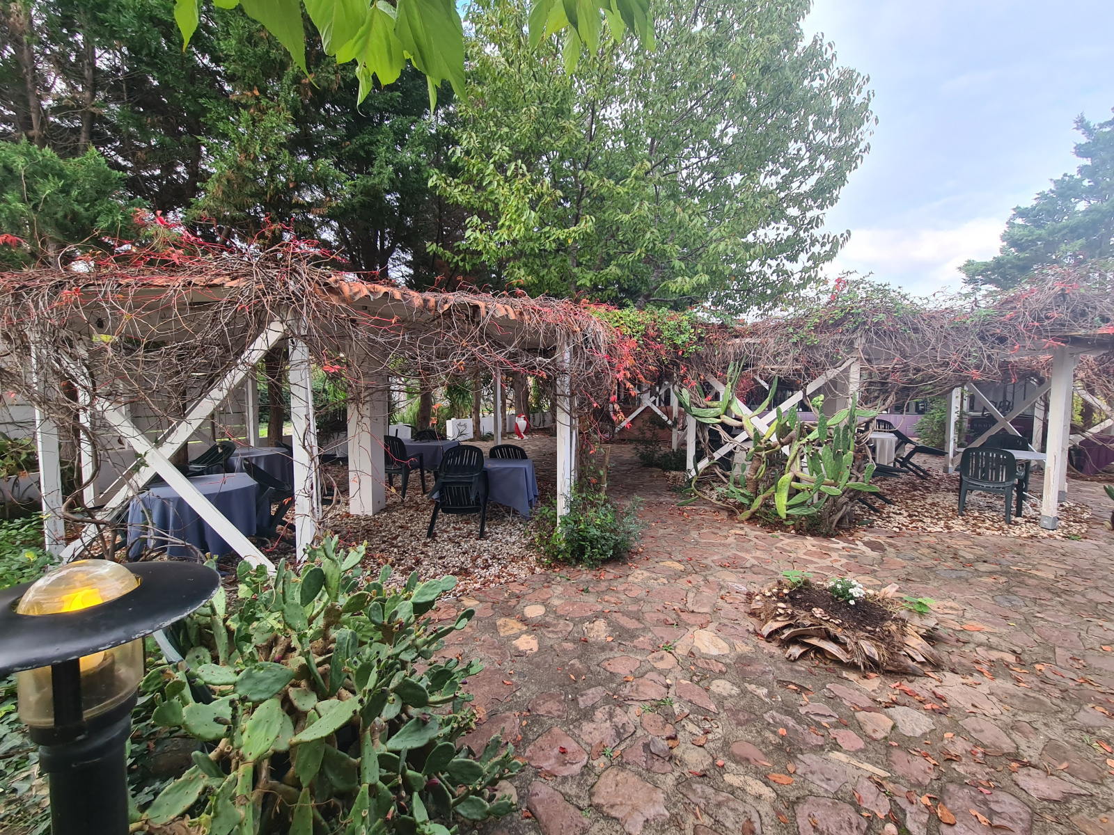 Une maison T3 de 68 m² avec 60 m² de cave ( réserve) et une partie restauration attenante de 80m², cuisine + verranda pour 30 couverts avec Terrasse ombragée fleurie aménagée de kiosques pour 70 couverts l'ensemble sur une parcelle de 2000 m².