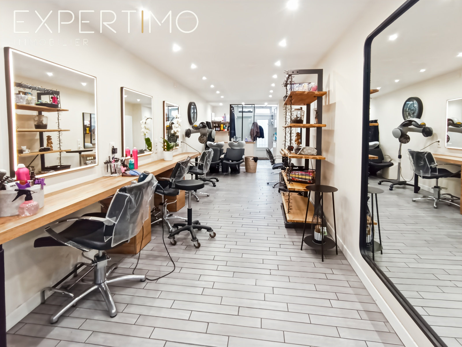 - d'un espace boutique décoré avec goût équipé de 4 postes techniques, 2 bacs