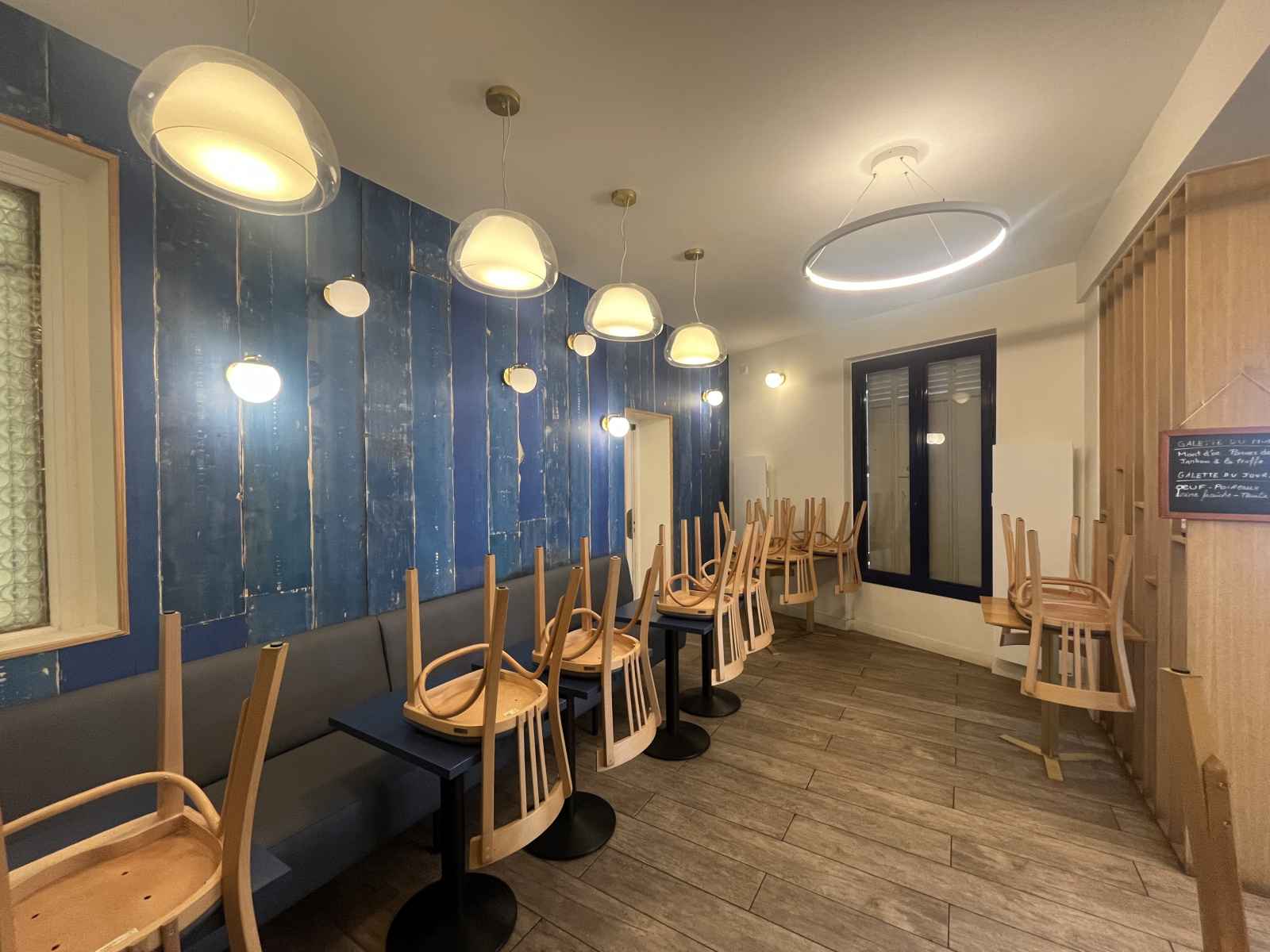 Le restaurant accueille 40 couverts à l’intérieur et bénéficie d’un droit de terrasse permanent pour 30 couverts supplémentaires. Il est équipé d’une extraction de 400 mm, et le bail commercial autorise tout type de restauration, offrant ainsi une grande liberté d’exploitation.