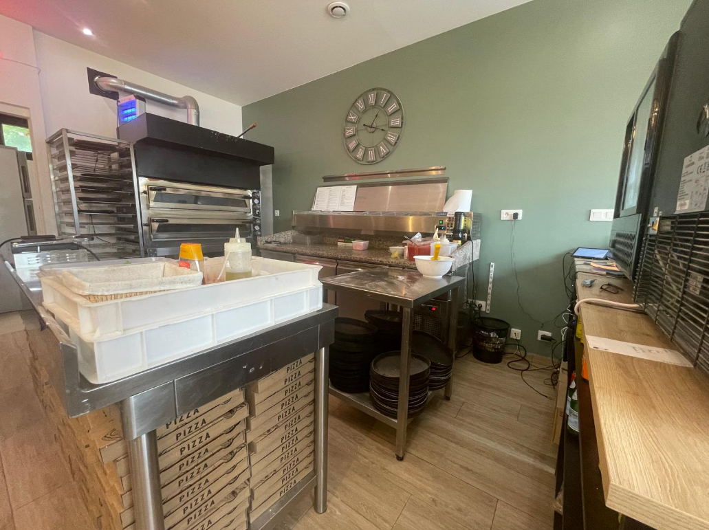 Le local développe environ 50 m² et est vendu avec l’ensemble du matériel professionnel nécessaire à l’exploitation : four à pizza, pétrin, saladette, tables, arrière-bar, réfrigérateur double porte, table réfrigérée en granit, congélateur, vitrine réfrigérée, lave-vaisselle et divers équipements.
