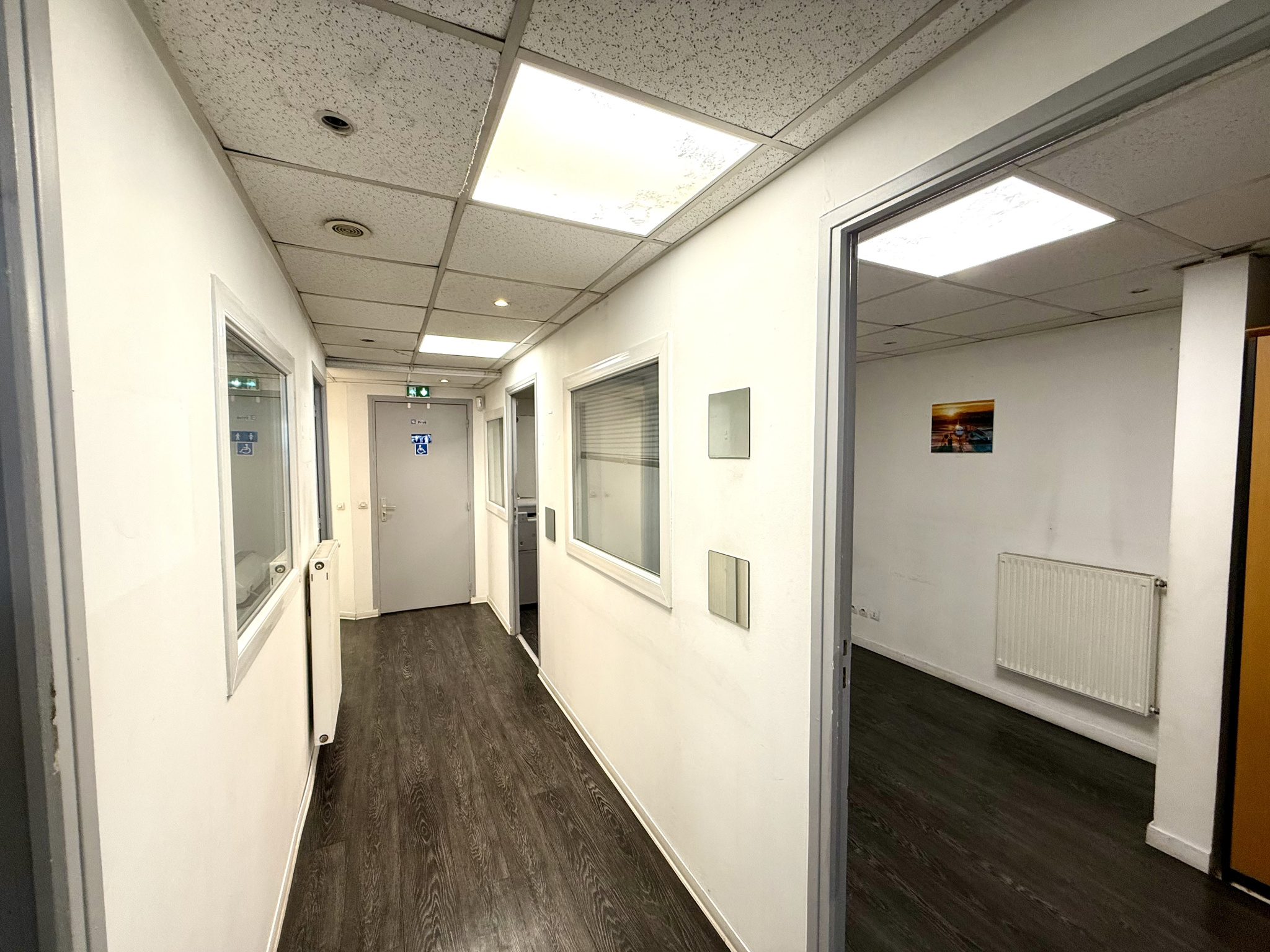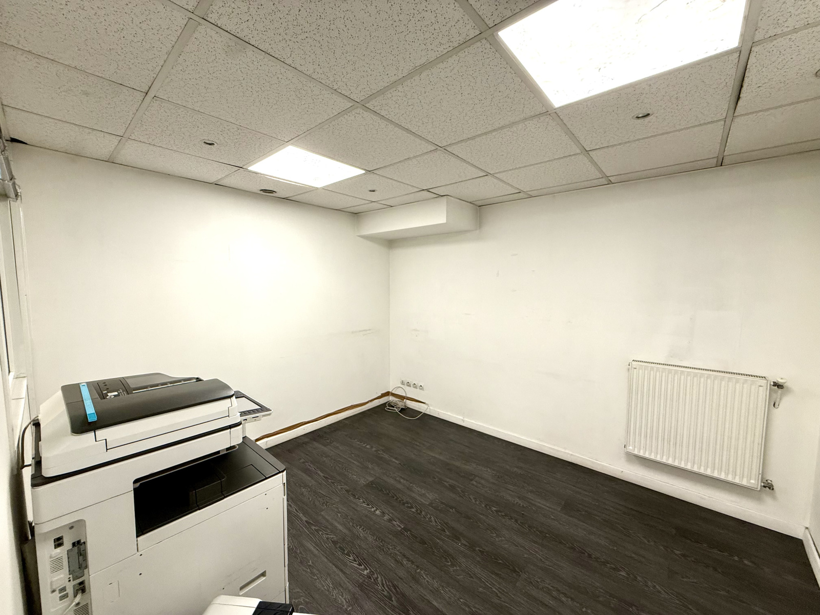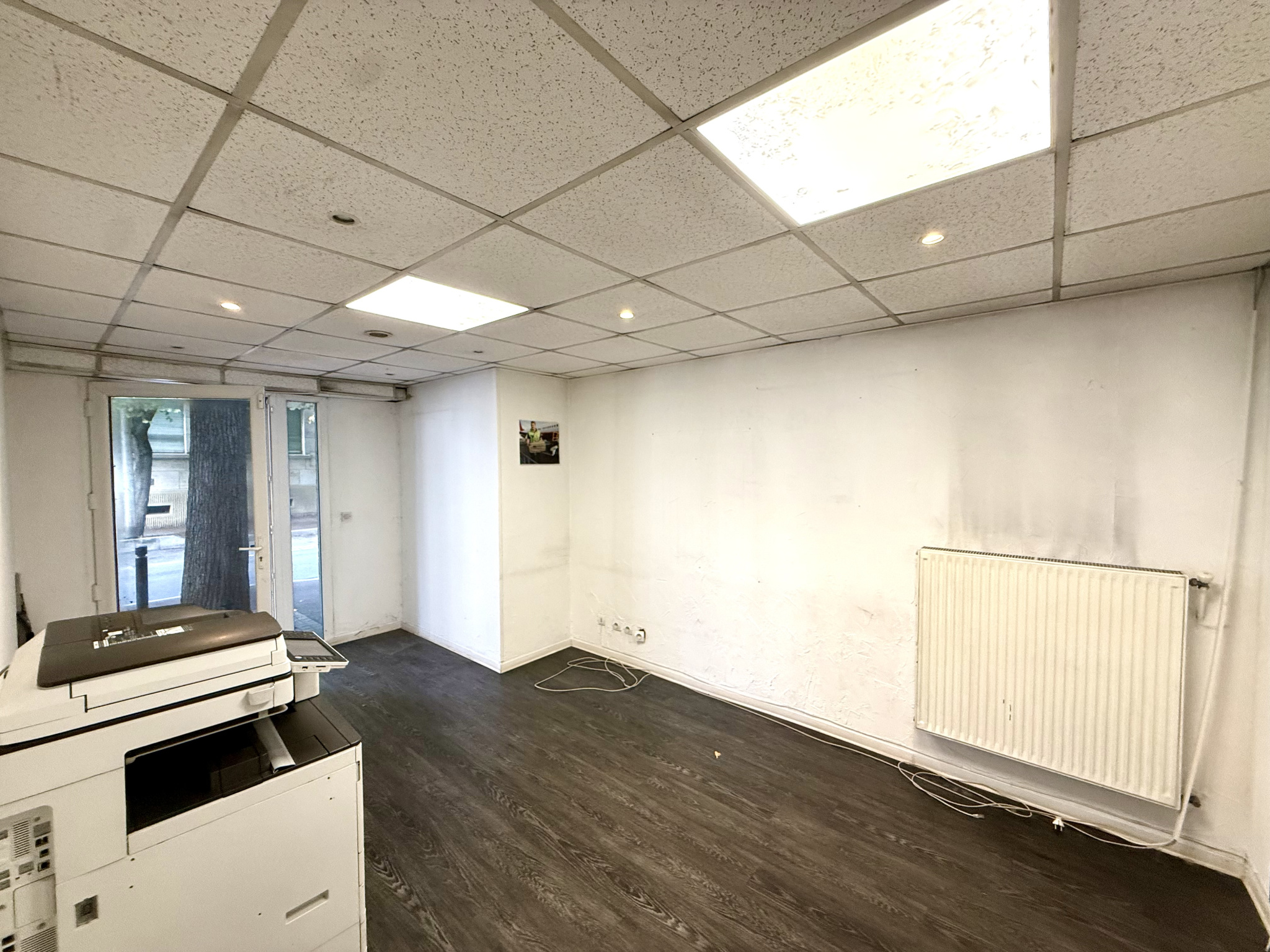 Local commercial avec vitrines sur rue (MURS LIBRES) de 72m2 aménagé avec : 5 bureaux + wc avec lavabo + une cuisine