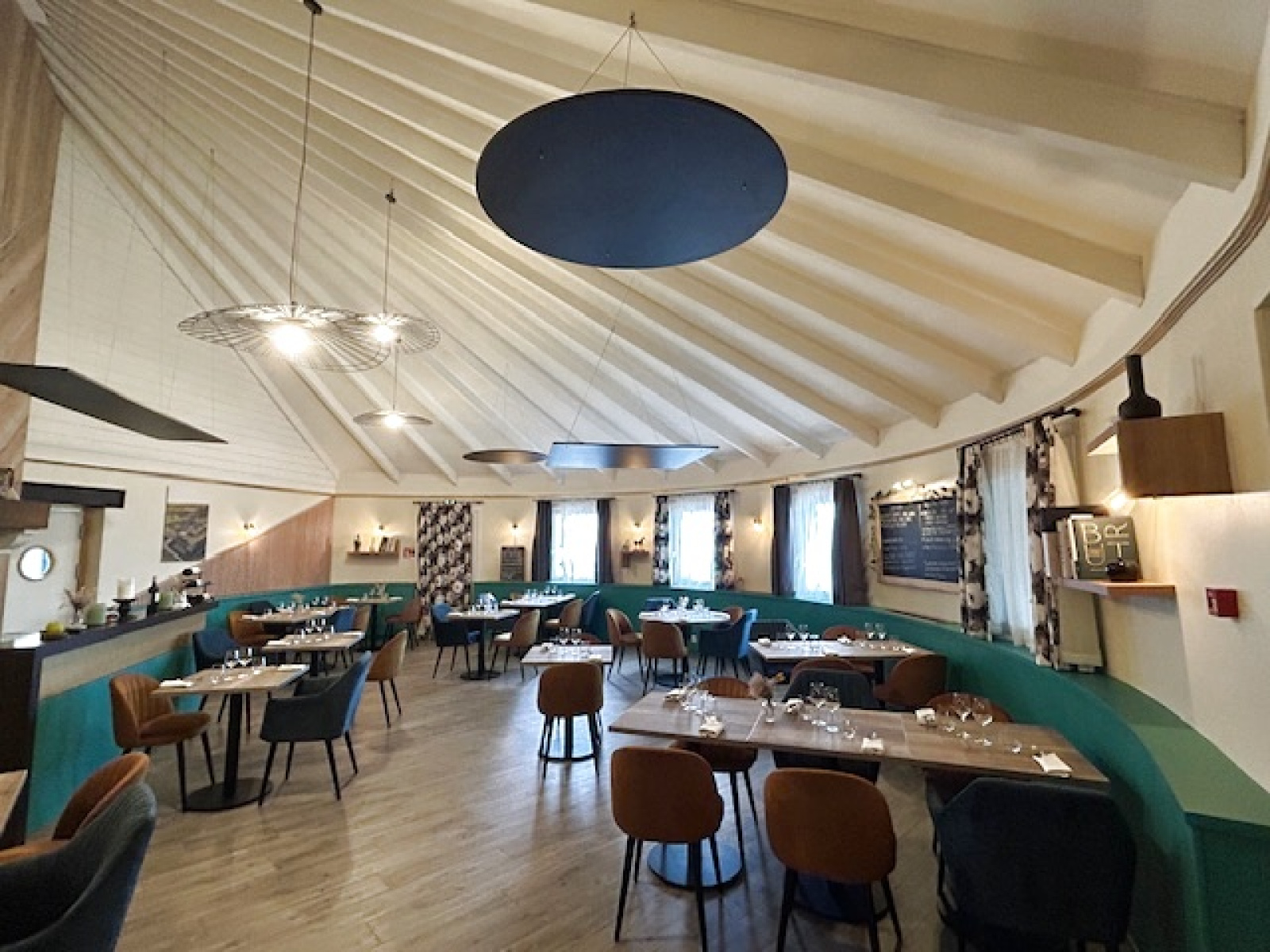 La salle accueille 60 couverts et une terrasse extérieure d'une capacité de 35 places.