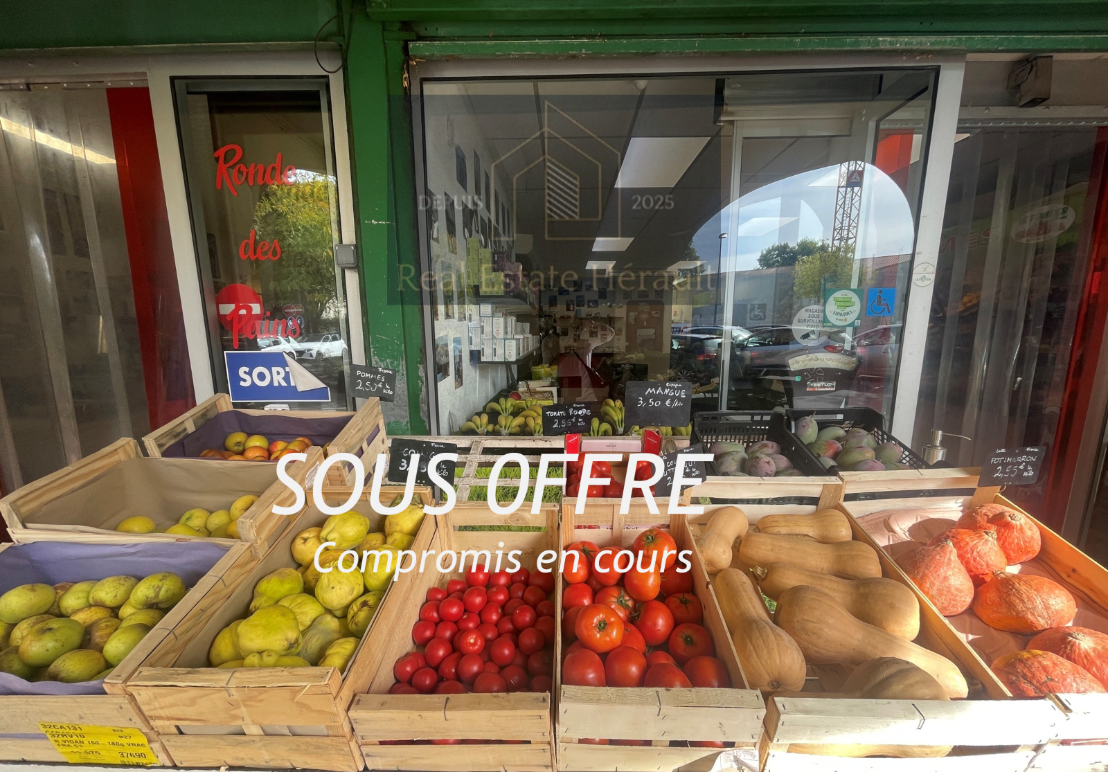 Divisée en 2 zones distinctes selon l'offre d'achalandage. La 1ère zone qui correspond au flux d'entrée sont présentés tous les produits frais maraichers et quelques produits annexes. C'est aussi dans cette zone que se trouve la chambre froide La 2nde zone offre une offre produits diverses et variées. Ici se situent l'accès à la partie logistique, le stockage, le bureau et les sanitaires. Enfin c'est ici attenant à la sortie que se situent les caisses.