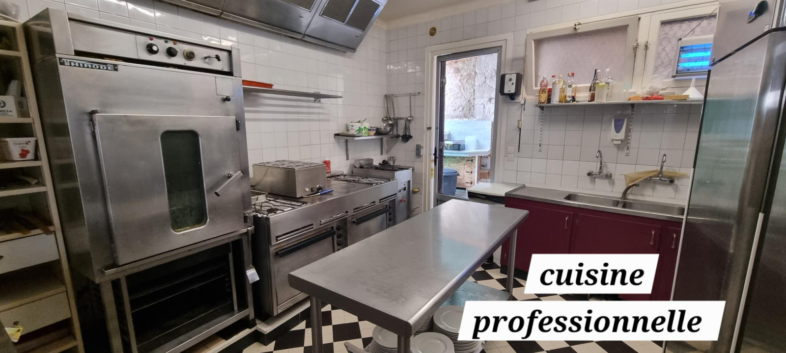 La partie restaurant comprend également un bar (licence IV) non exploité à ce jour, une cuisine professionnelle et des toilettes norme PMR.