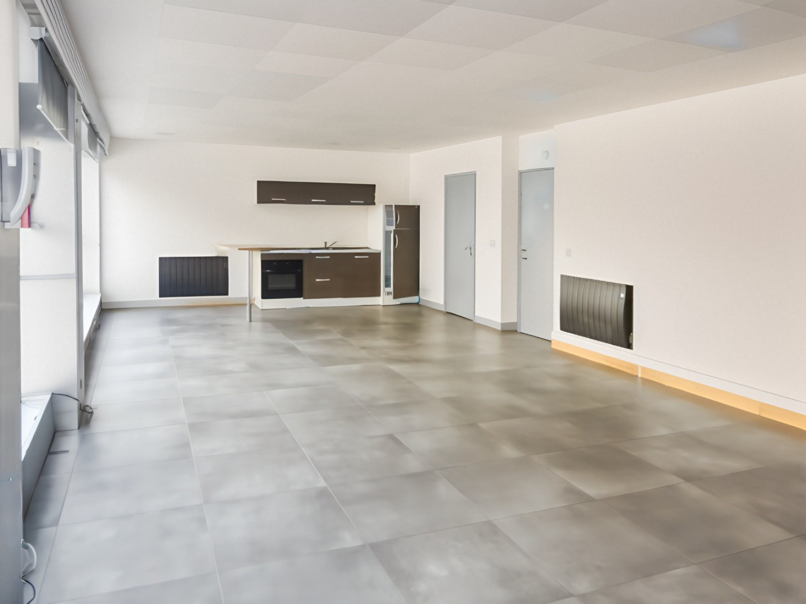 Le rez de chaussée propose un espace de travail et un bureau bénéficiant d'une excellente visibilité grace à une vitrine linéaire de 8 ml .Fonctionnel et lumineux ,il comprends également un coin toilette et un local technique, une cuisine aménagée.