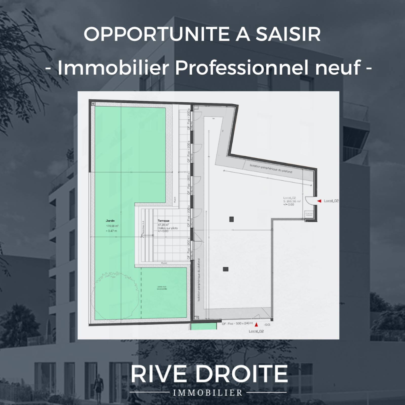 Surface de bureaux d'env 166m2, brut de beton, fluides en attentes, à aménager selon vos souhaits. TERRASSE DE 47m2, JARDIN de 175m2 - 3 PLACES DE PARKING - FRAIS DE NOTAIRE REDUITS - TVA RECUPERABLE - DISPONIBILITE 2026 - A SAISIR ! Prix 561.400€ TTC (stationnement inclus) soit 467.834€ HT. A SAISIR
