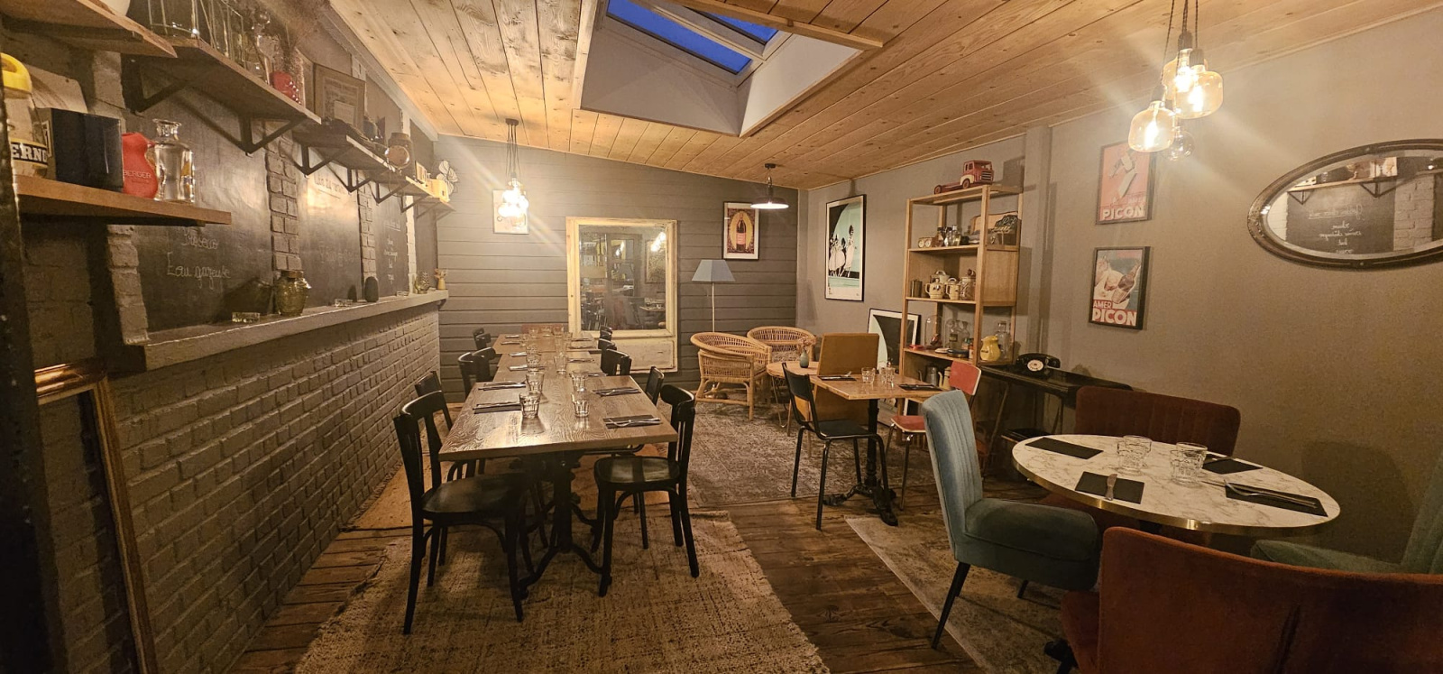 Surface de 130 m² situé en centre-ville sur axe important. 1 grande salle et 1 arrière salle cosy. Avec 1 appartement de fonction de 80 m² et 1 grande cave.