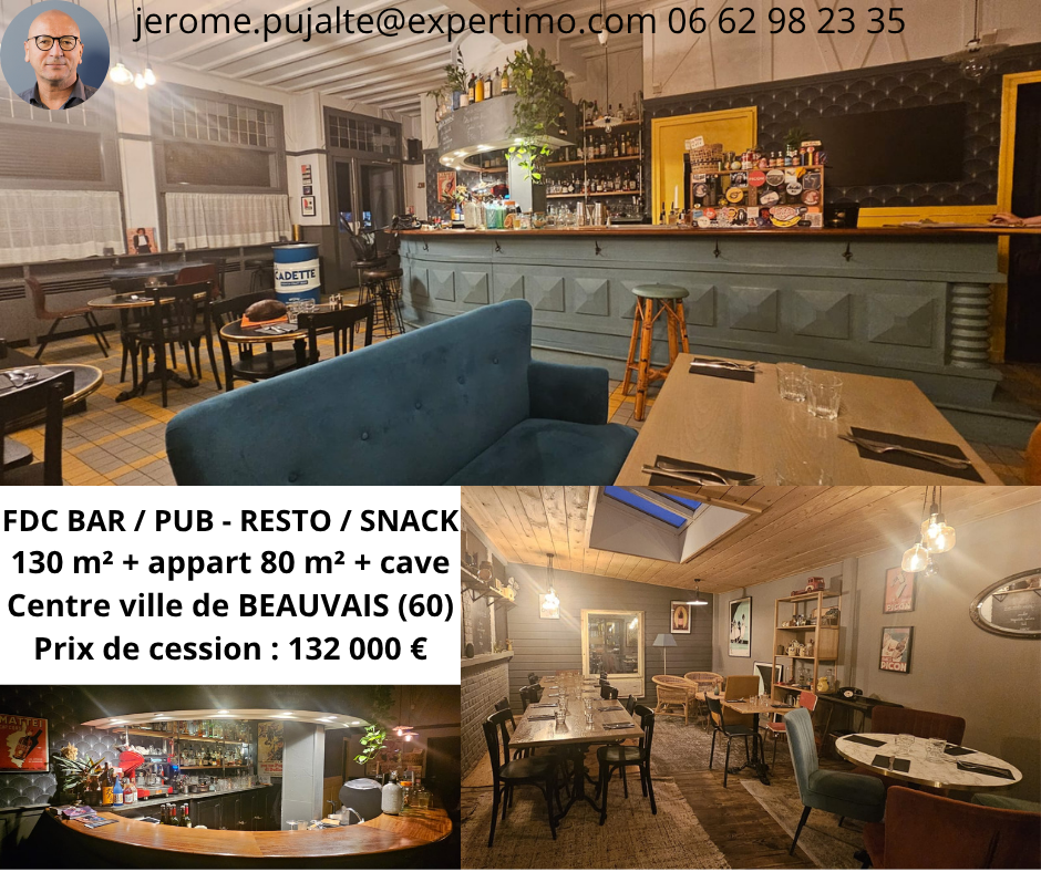 A vendre - Fonds de commerce – BAR, COCKTAILS, RESTO-BISTRO-BURGERS, à 1H de Paris à BEAUVAIS 60000.