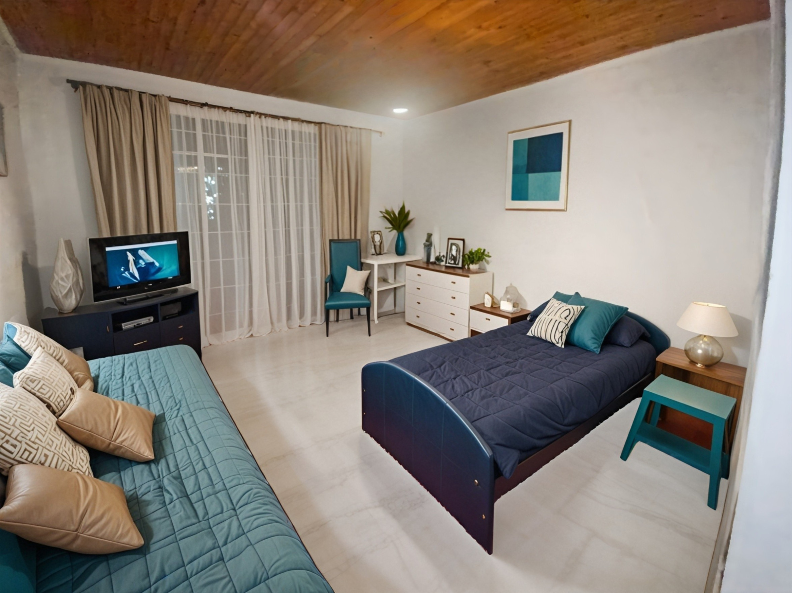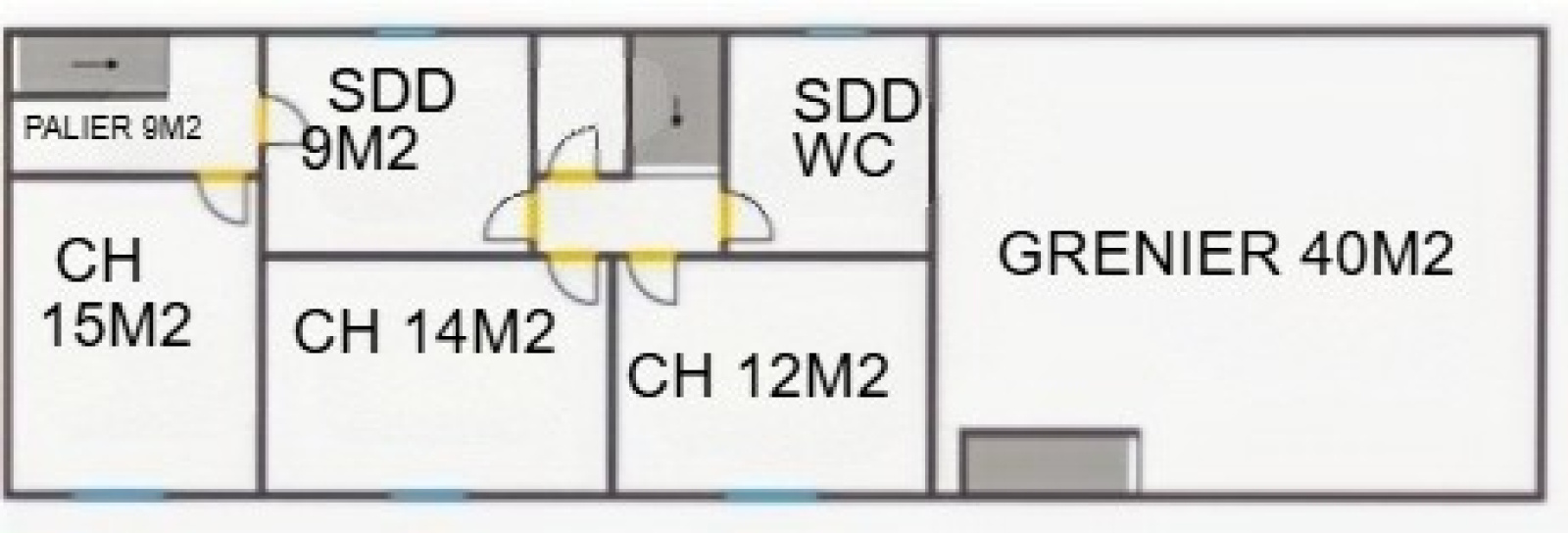 d'un appartement d'environ 90m2 avec 3 chambres et 2 salles de bain.
