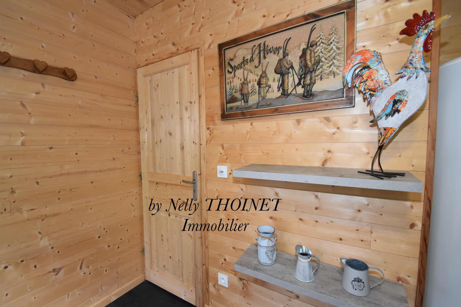 Sa décoration est principalement en bois naturel avec une touche de modernité. Joli mariage très harmonieux avec une esprit chalet de montagne chaleureux et réconfortant.