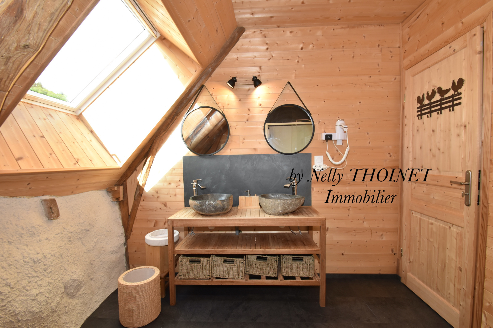 Côtés techniques: couverture en ardoise pour les 3/4 du bâtiment, chauffage électrique avec complément granulés dans la salle du rez-de chaussée, tout à l'égoût, isolation laine de verre sous charpente et gîte entièrement refait récemment.