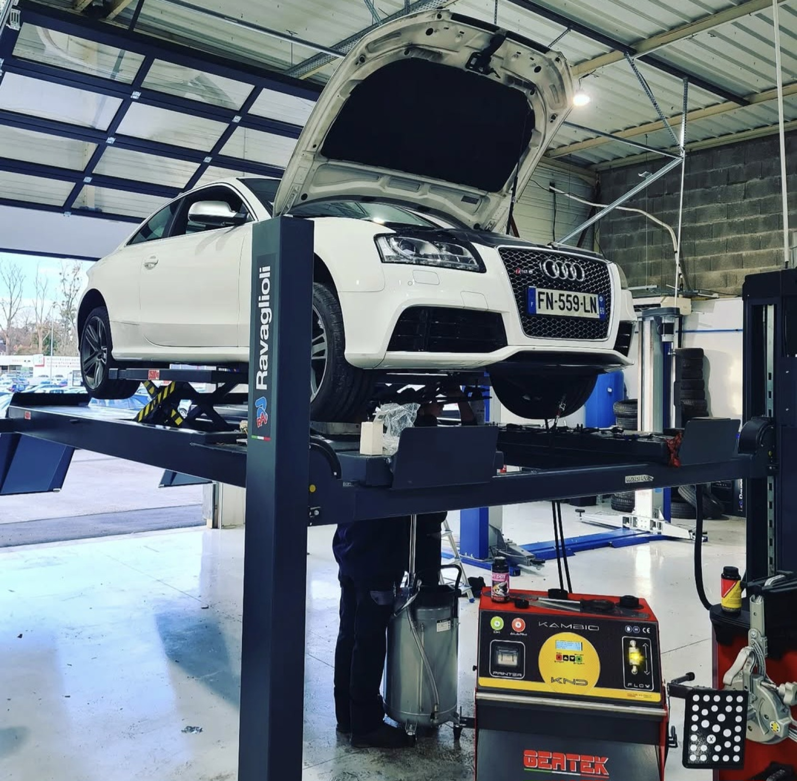 Un compresseur a vis, une dialyse de vidange de boîte automatique + une station à clim.