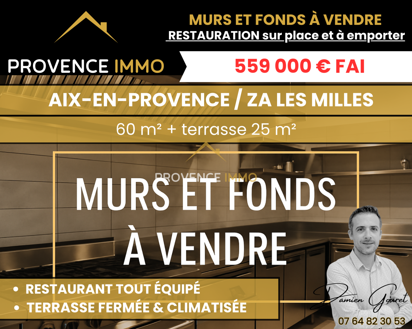 Prix global de vente (fonds + murs) : 559 000 € FAI TTC