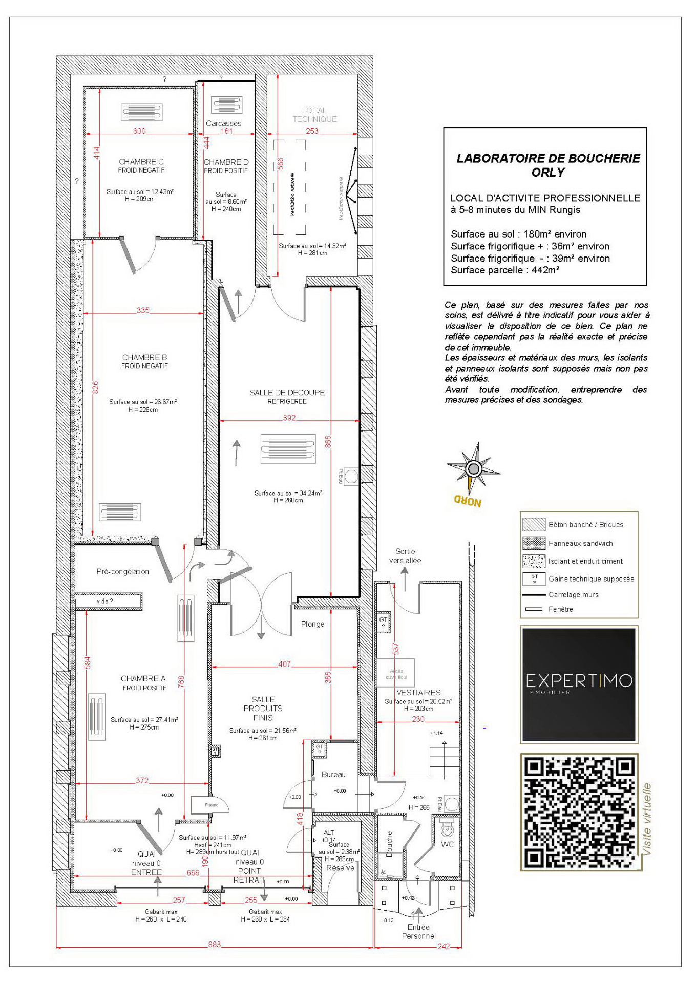 A seulement 5 minutes de Rungis, le labo convient pour la viande, la fromagerie et la poissonnerie. Transformation à froid et stockage. Ne convient pas pour la cuisine.